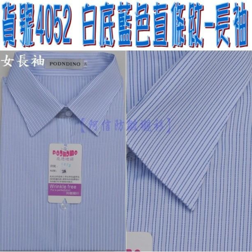 【阿信防皺襯衫】女長袖 貨號4052 白底藍色直條紋 ☆漂亮剪裁☆ 穿起來修身顯瘦,工廠直營平價供