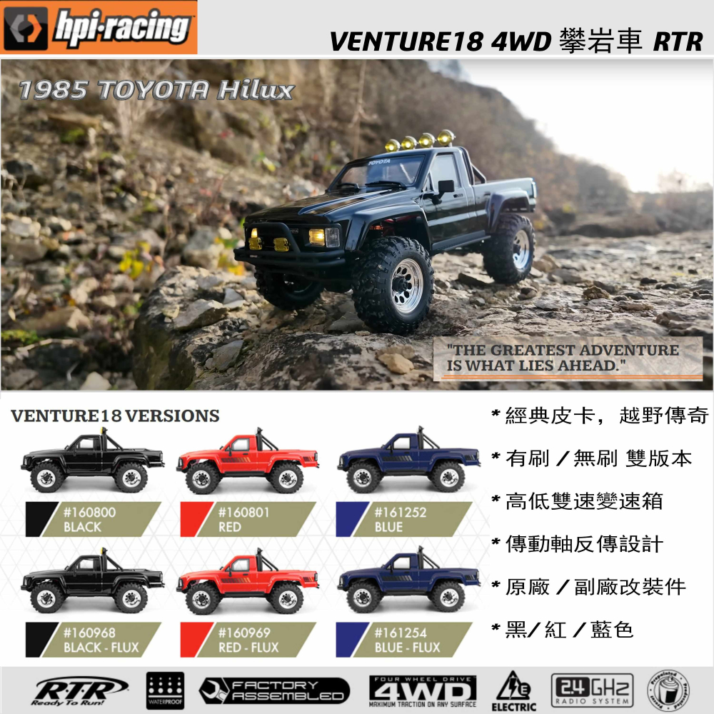 * 品項:1/18 Venture18 Flux Brushless 1985 Toyota Hilux SR5 RTR 4WD Red Version EP w/ 2.4GHz Radio