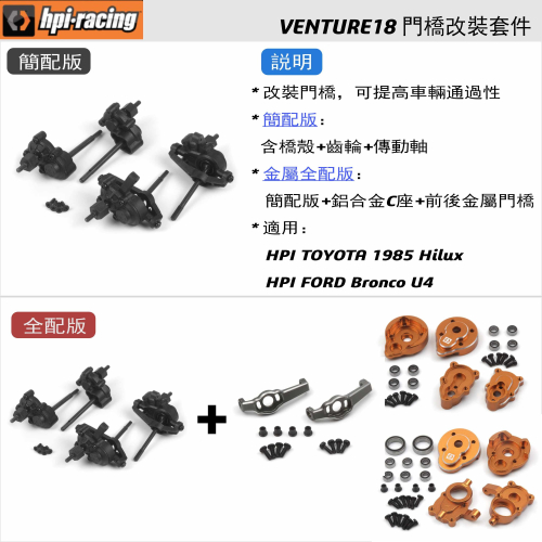 161158【酷輪坊】HPI VENTURE18 完整門橋改裝套件