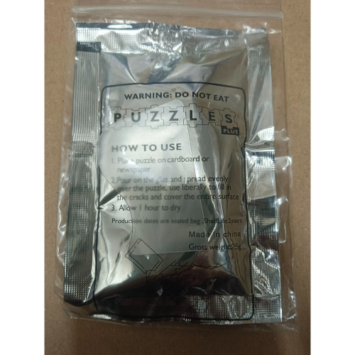 就是拼圖裡面附的那一包膠水 (大概就醬料包再大一點的大小)