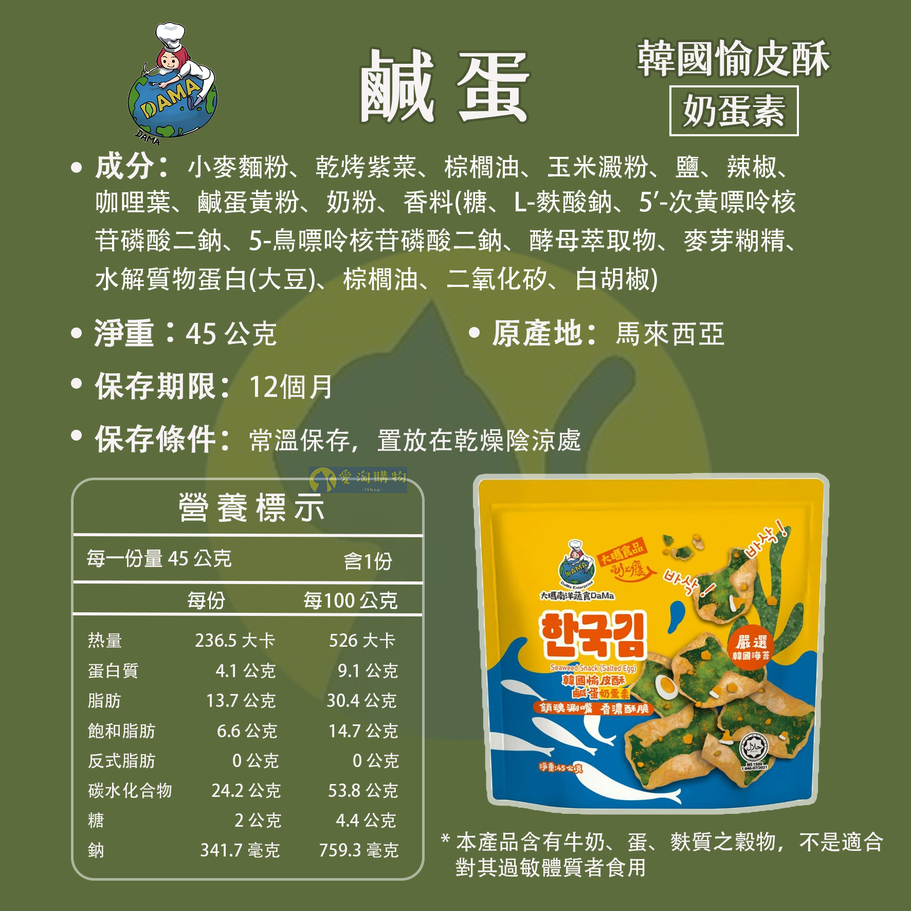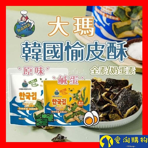 【愛淘購物】大瑪 韓國愉皮酥 海苔酥 素食 餅乾 海苔 原味 鹹蛋口味 全素 奶蛋素