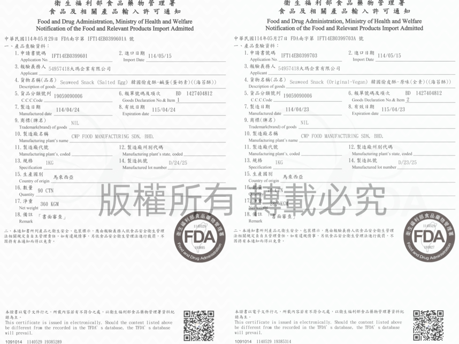 商品符合主管機關查驗許可