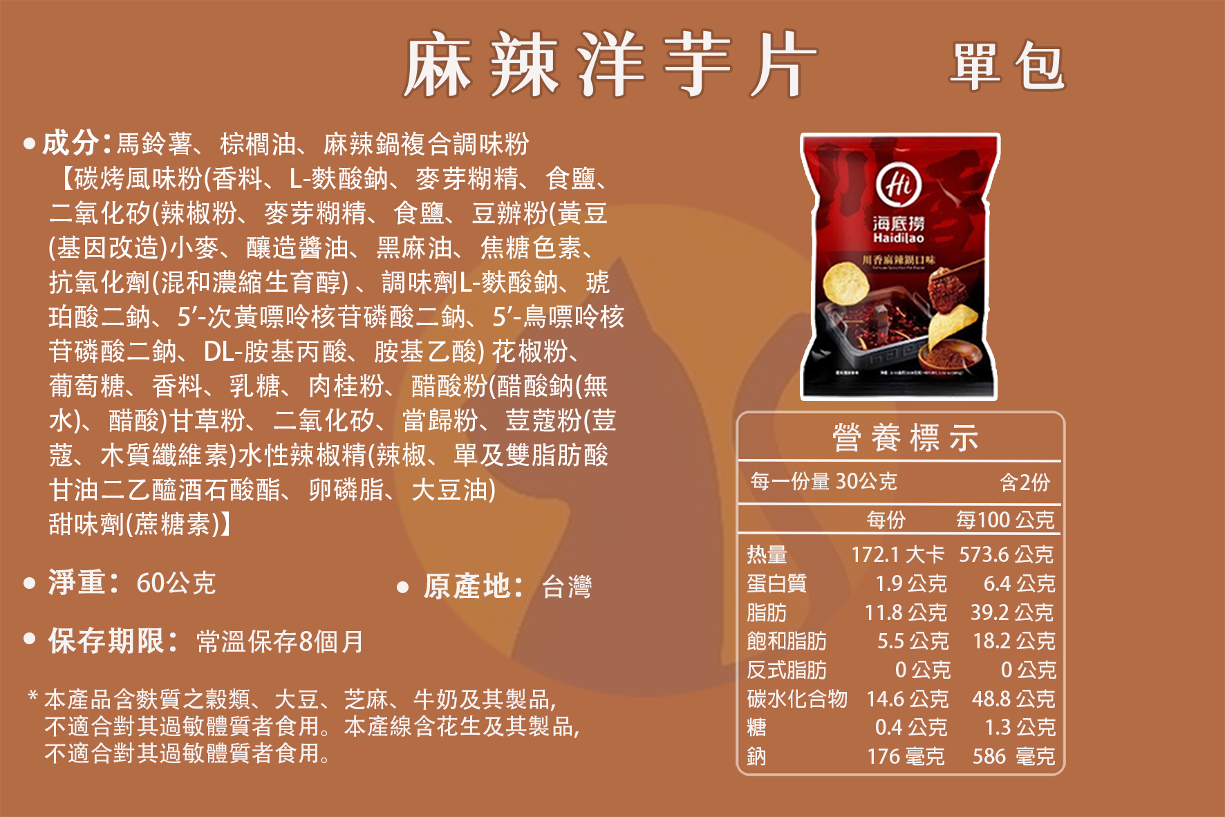 麻辣口味洋芋片 2026.08.01