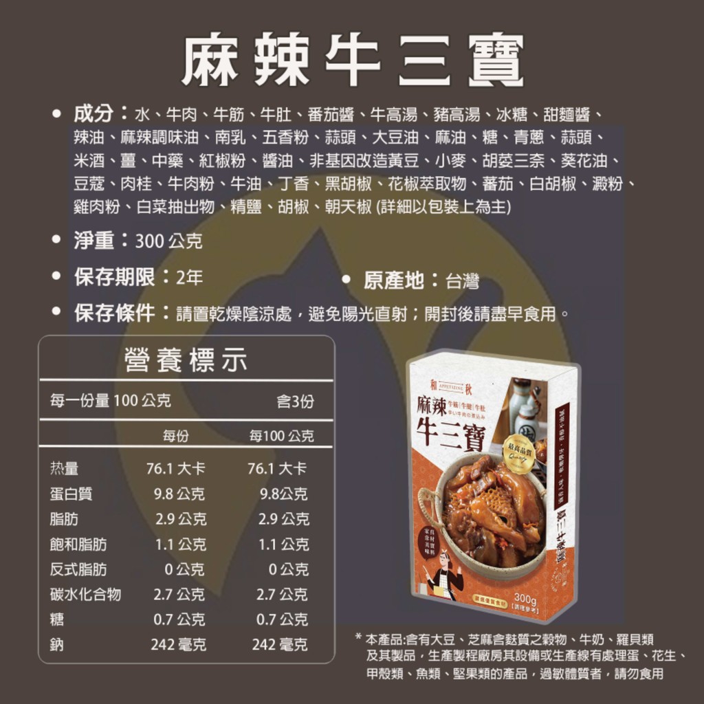 和秋 麻辣牛三寶300g(固形物)