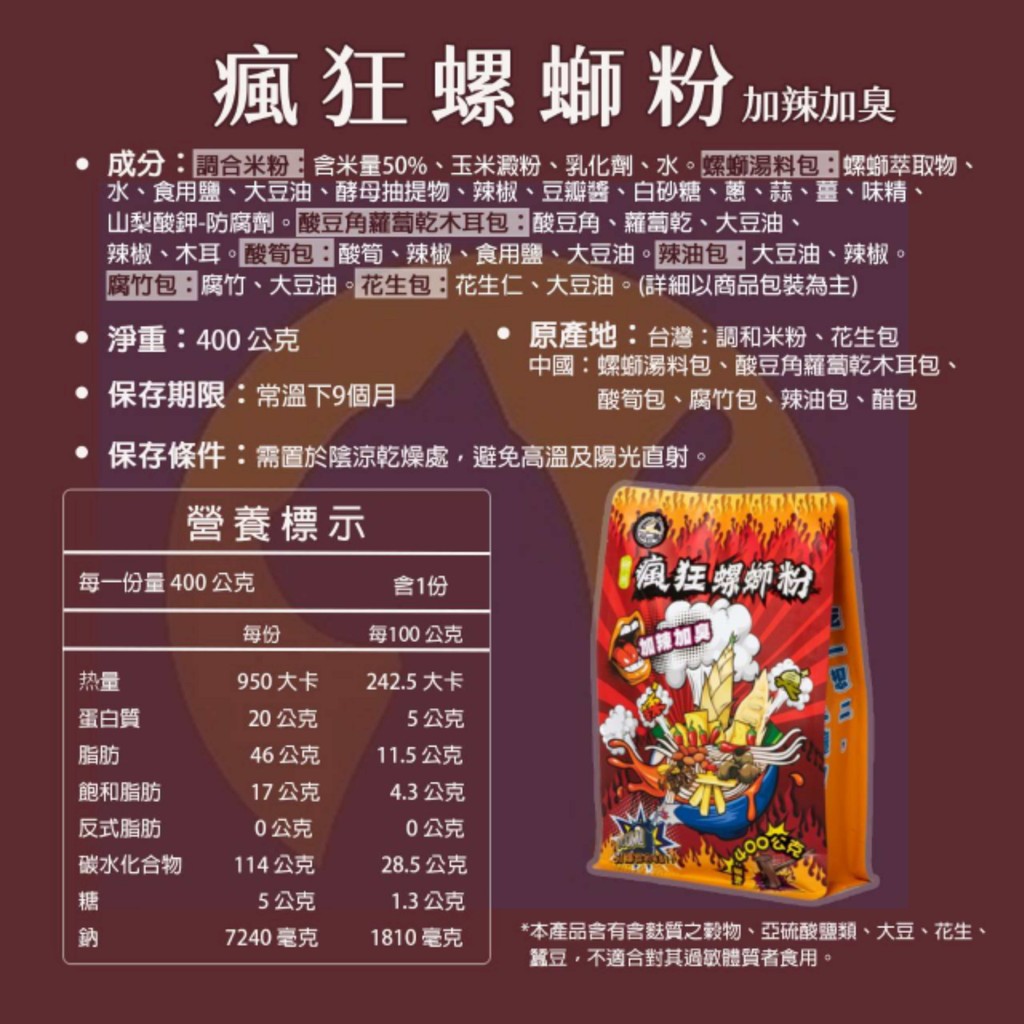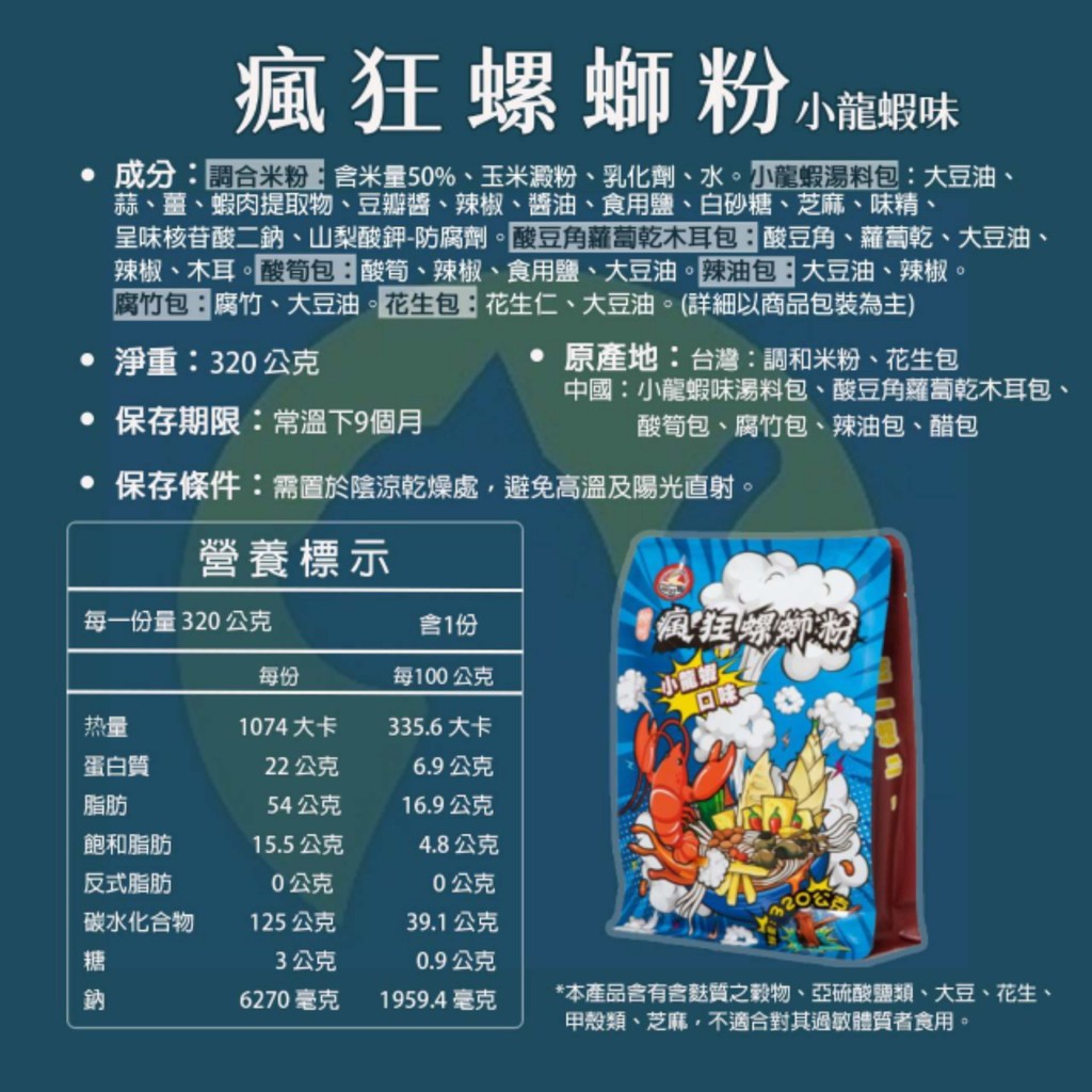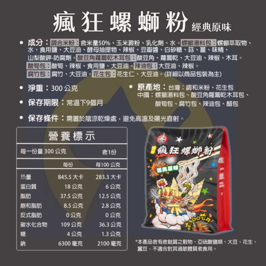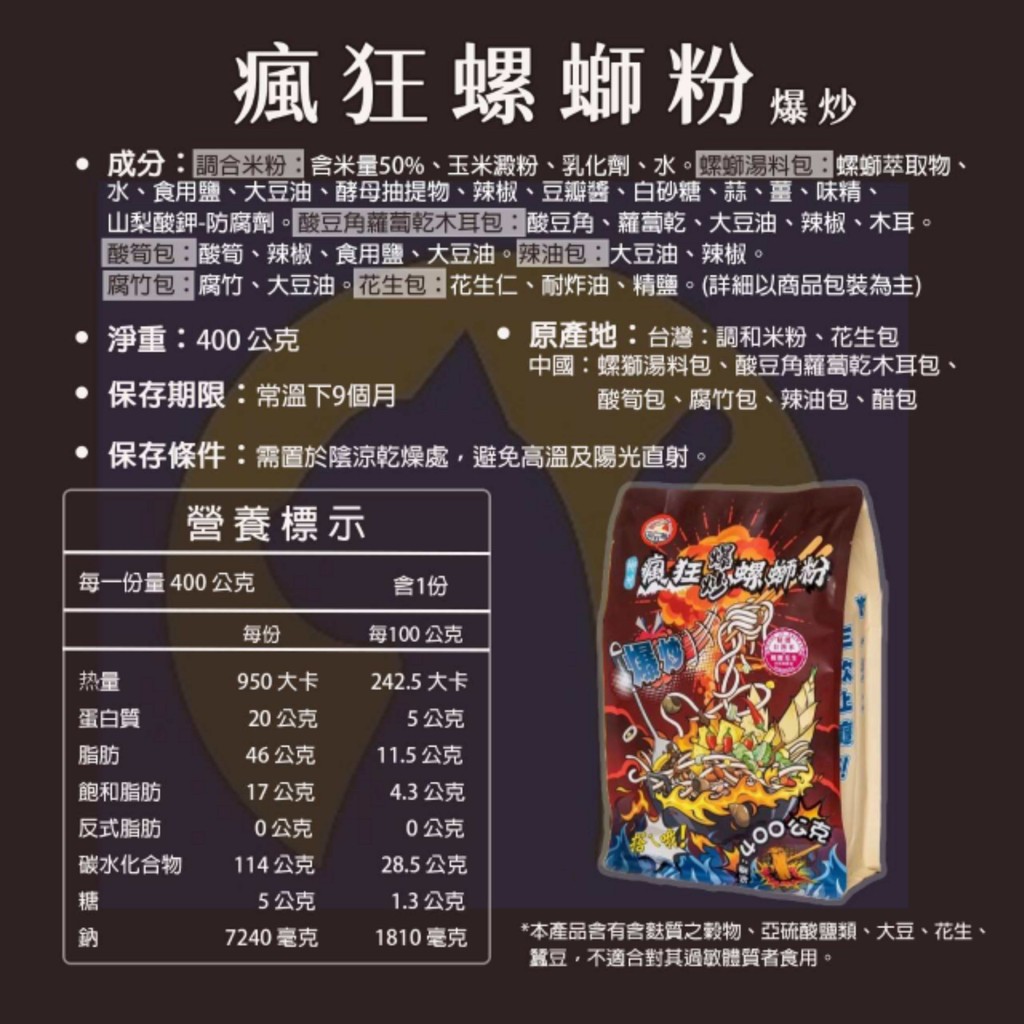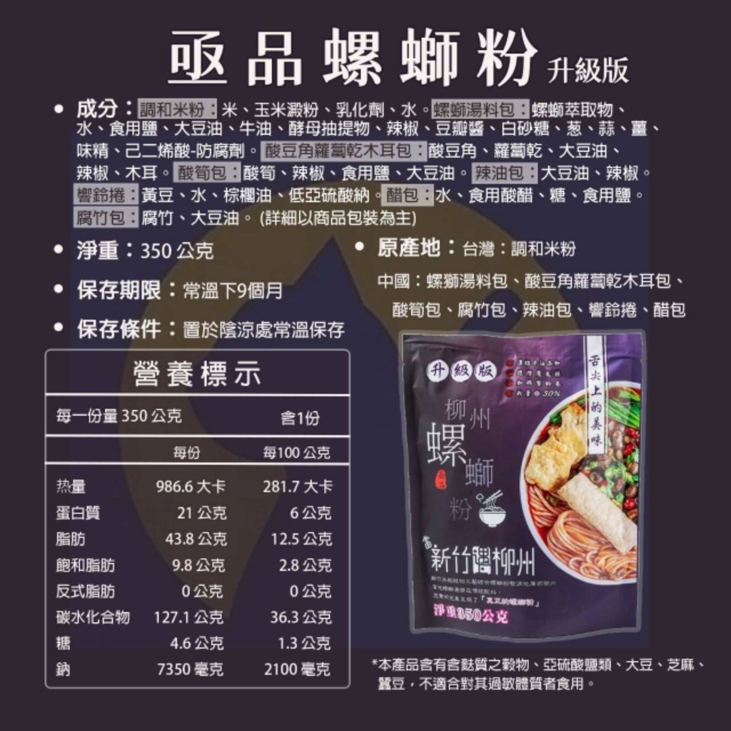 *符合政府法規,使用台灣在地生產的粉體,絕不是蹭螺螄粉的熱度而非螺螄粉之實的產品……….