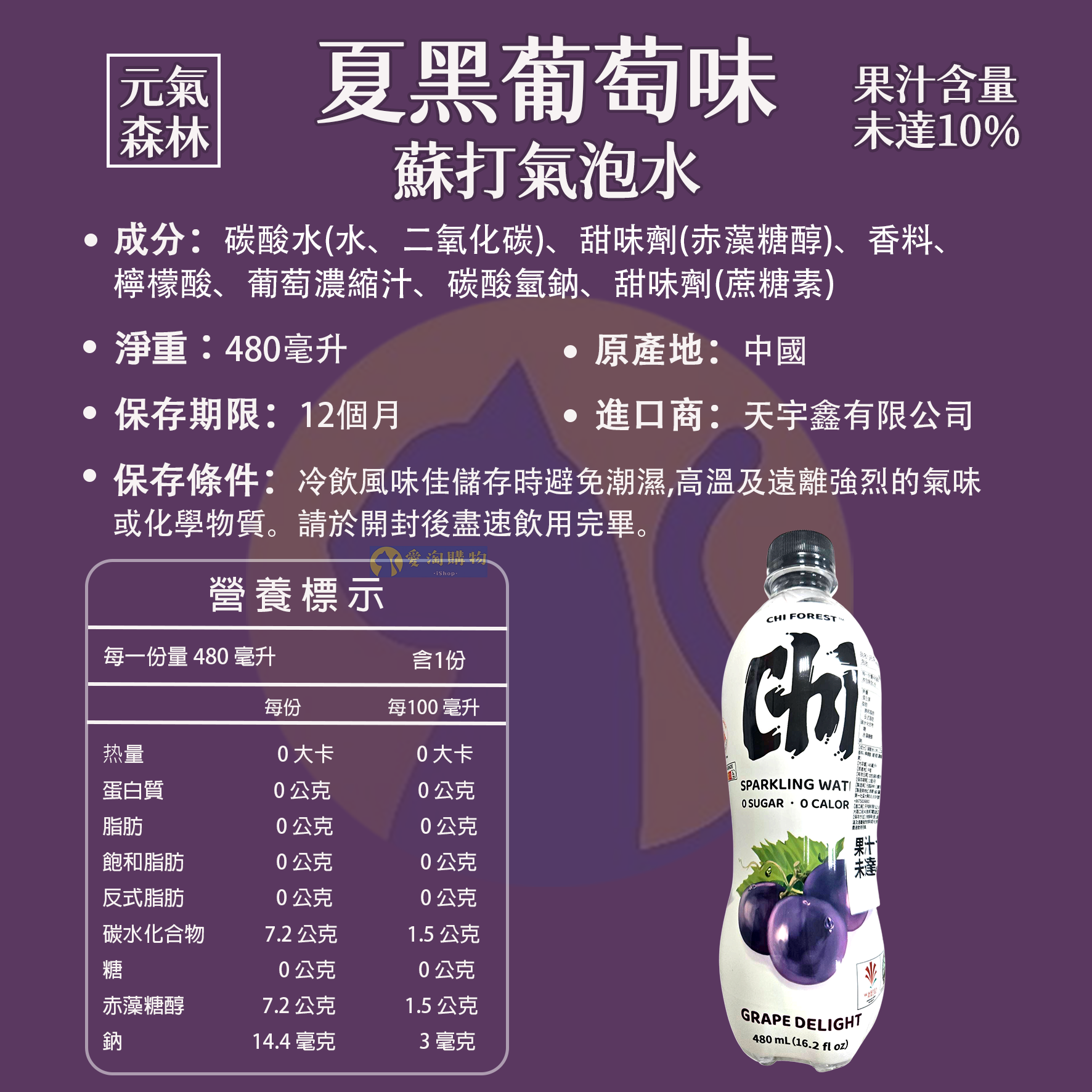 夏黑葡萄味氣泡水: