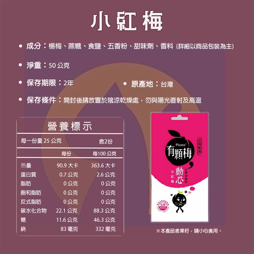 嚴選梅子製成的經典零嘴系列,將酸甜滋味完整保留,口感Q彈不黏牙,越吃越涮嘴。有顆梅系列主打自然果香與回甘風味,酸中帶甜、清爽不膩,是解嘴饞與飯後小點的理想選擇。