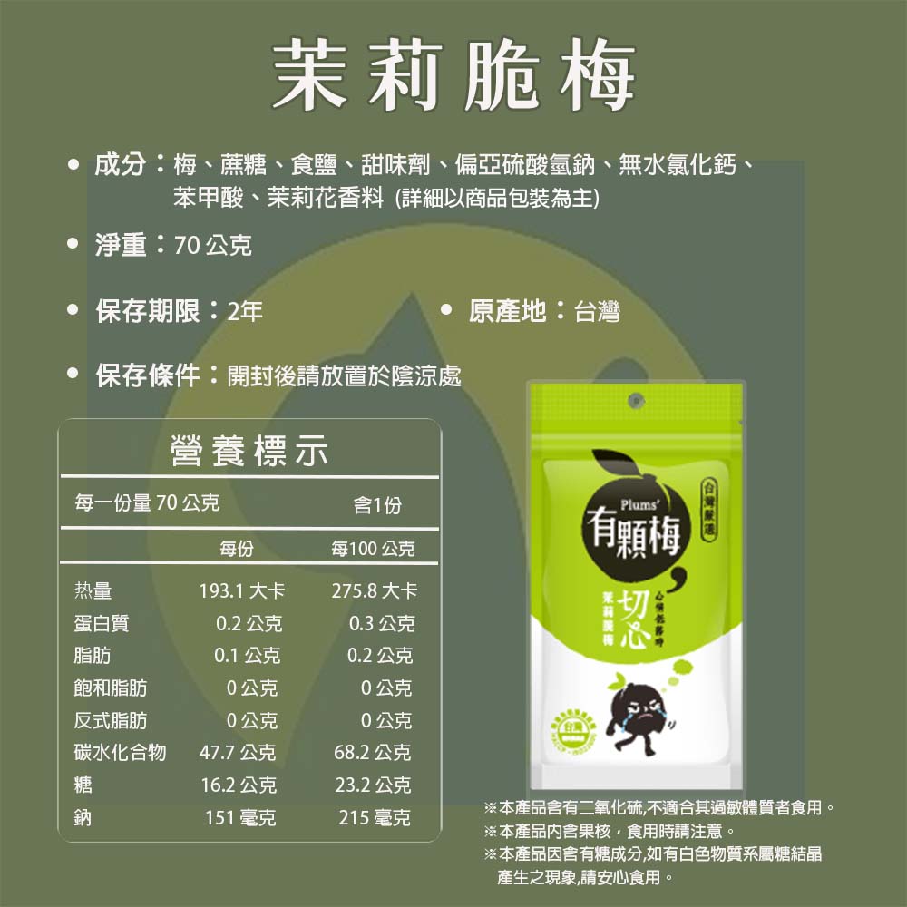 • 【單包】茉莉脆梅70g 【單包】茉莉脆梅70g