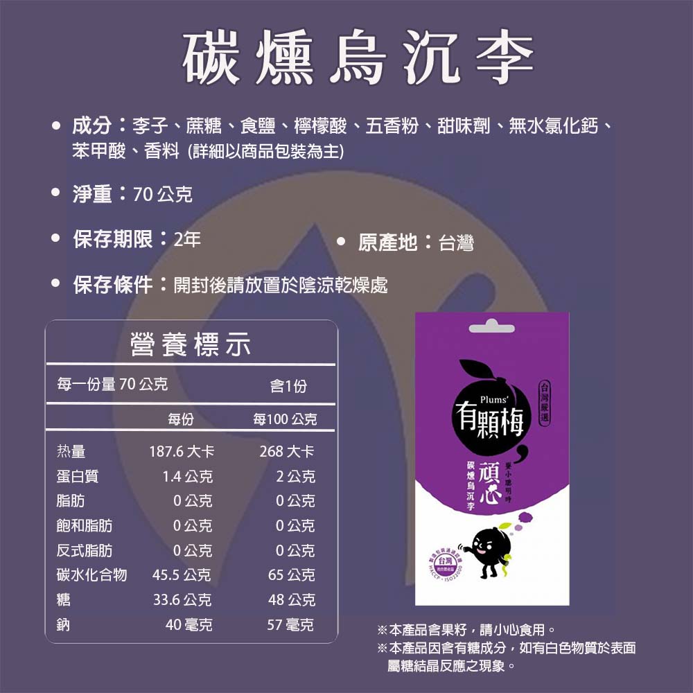 • 【單包】碳燻烏沉李70g 【單包】碳燻烏沉李70g