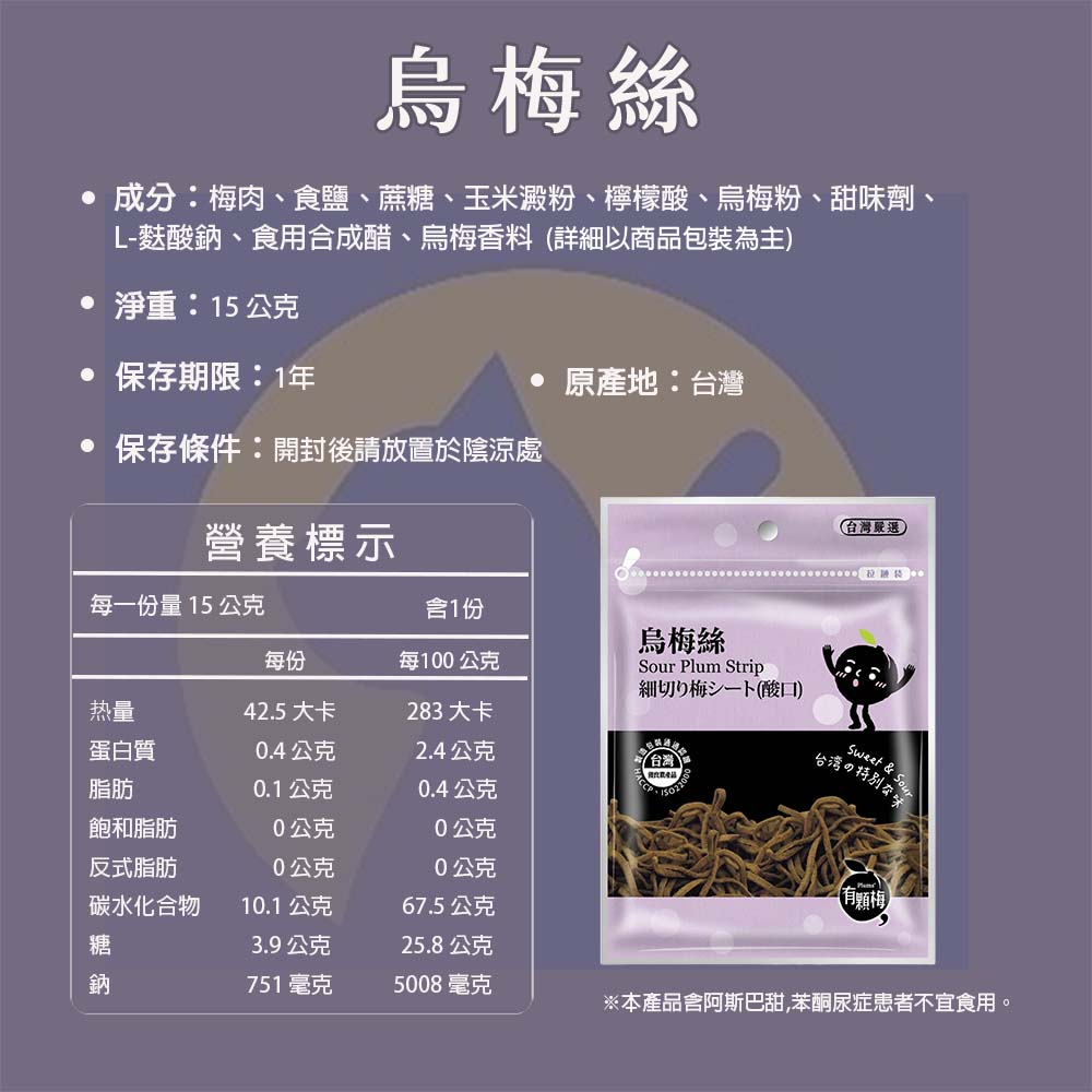 • 【單包】烏梅絲15g 【單包】烏梅絲15g