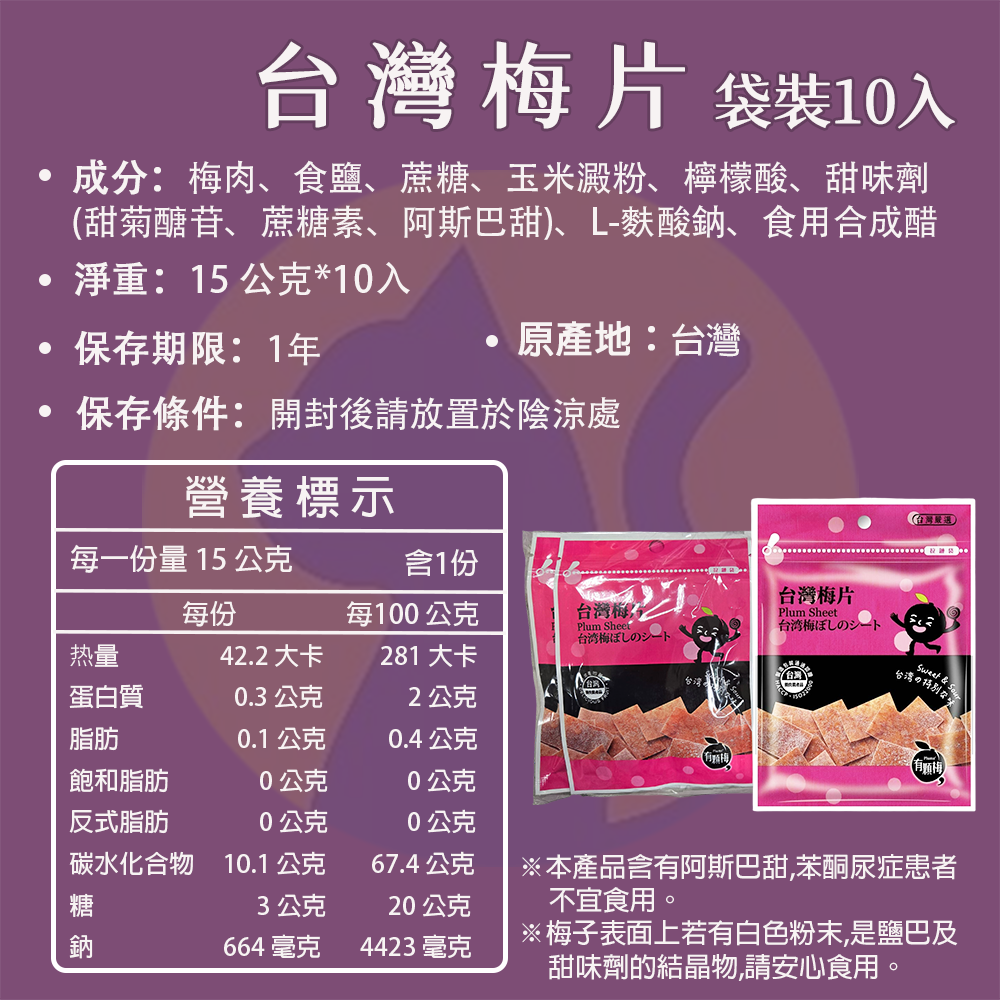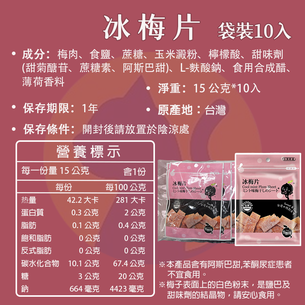 • 【整袋10入】台灣梅片 15g 【整袋10入】台灣梅片 15g