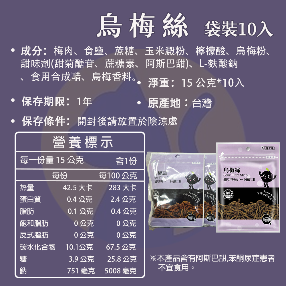• 【整袋10入】烏梅絲 15g 【整袋10入】烏梅絲 15g