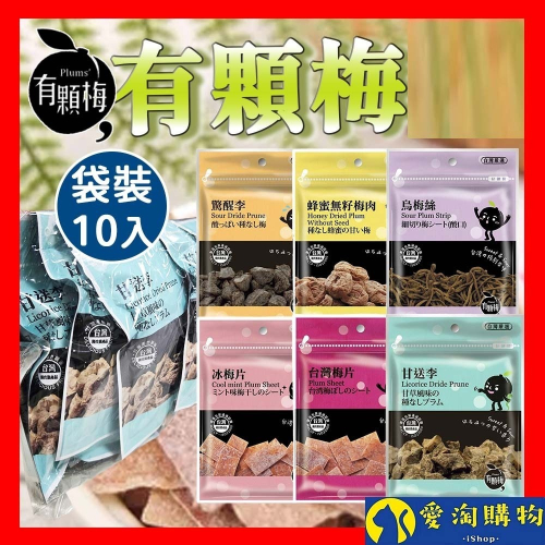 【愛淘購物】有顆梅 台灣梅片 果乾 袋裝10入 冰梅片 甘送李 驚醒李 烏梅絲 蜂蜜無籽梅肉