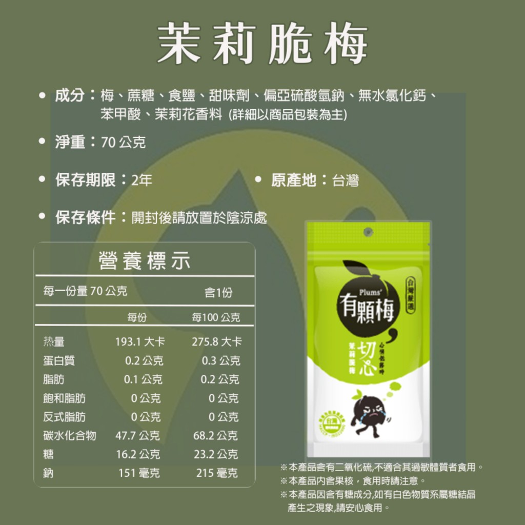 Plums' 有顆梅保存期限
