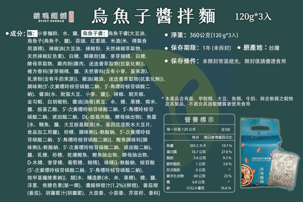 品名:【整袋】烏魚子醬拌麵【120g*3入】
