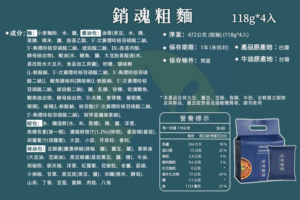 品名:【整袋】大師兄 銷魂粗麵118g【4入裝】