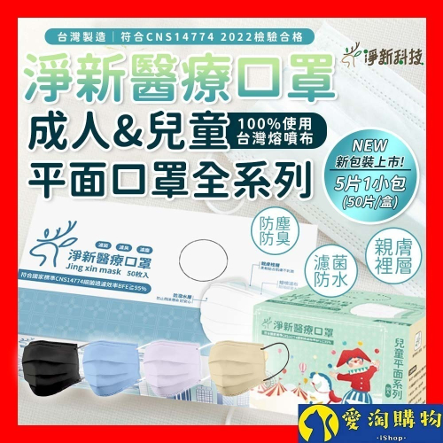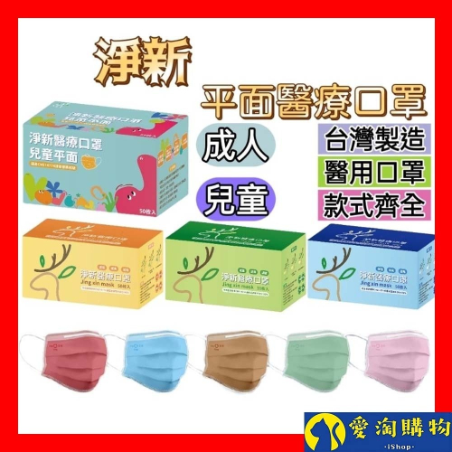 【愛淘購物】淨新 醫用口罩 醫療口罩 平面醫療口罩 台灣製造 50片裝 平面成人平面兒童 醫療級口罩 平面口罩
