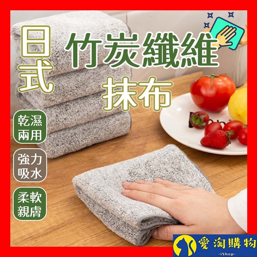 【愛淘購物】日式竹炭纖維抹布 吸水抹布 纖維抹布 不易吸附油汙 抹布 清潔布 竹炭纖維 超細纖維 廚房 洗車