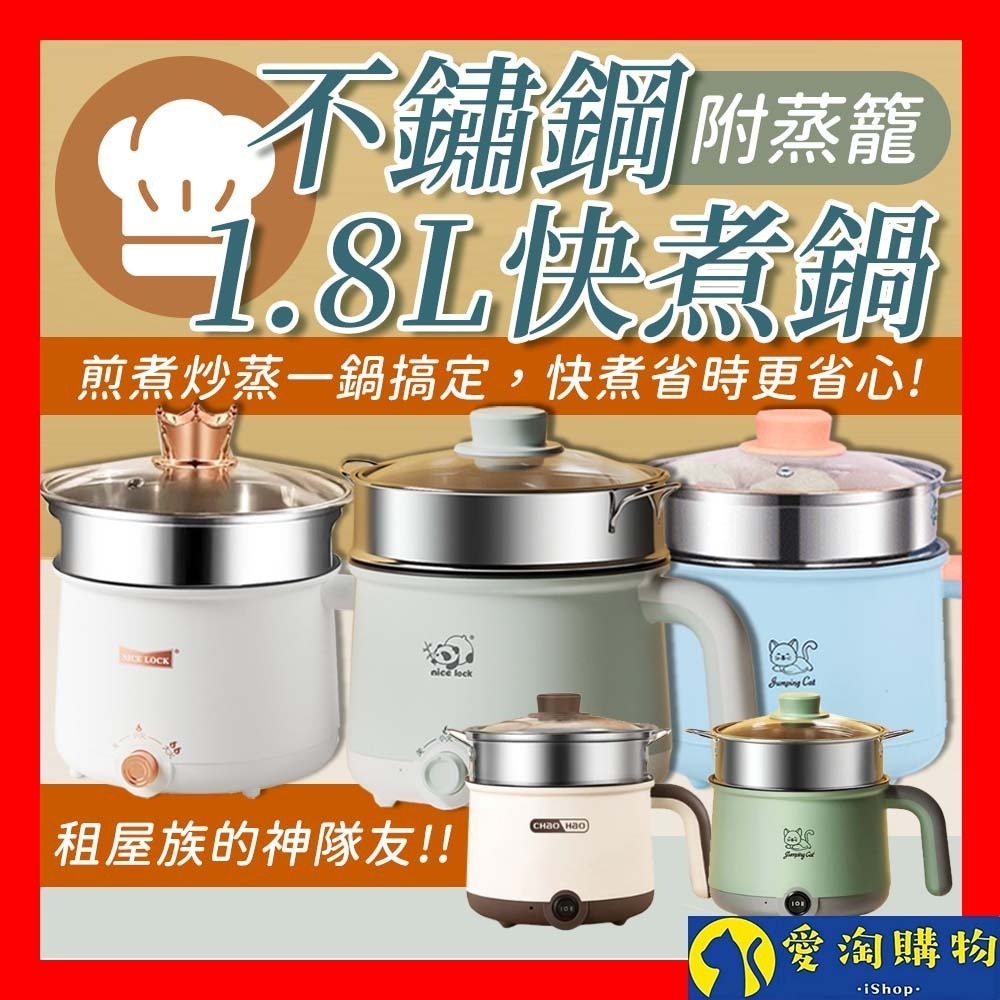 【愛淘購物】不鏽鋼快煮鍋1.8L 附蒸籠 電煮鍋 蒸煮鍋 料理鍋 泡麵鍋 宿舍鍋 火鍋 蒸炒煎煮 上蒸下煮