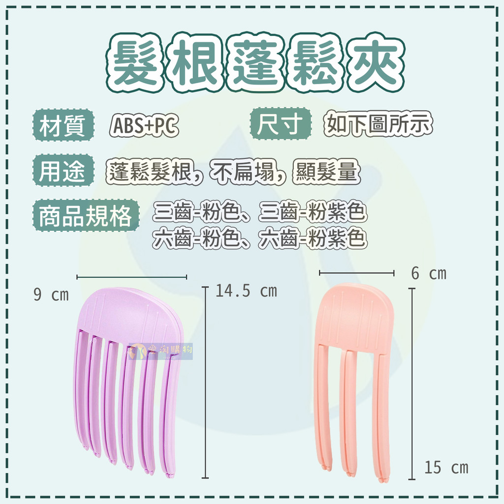 • 六齒粉紫色-髮根蓬鬆夾