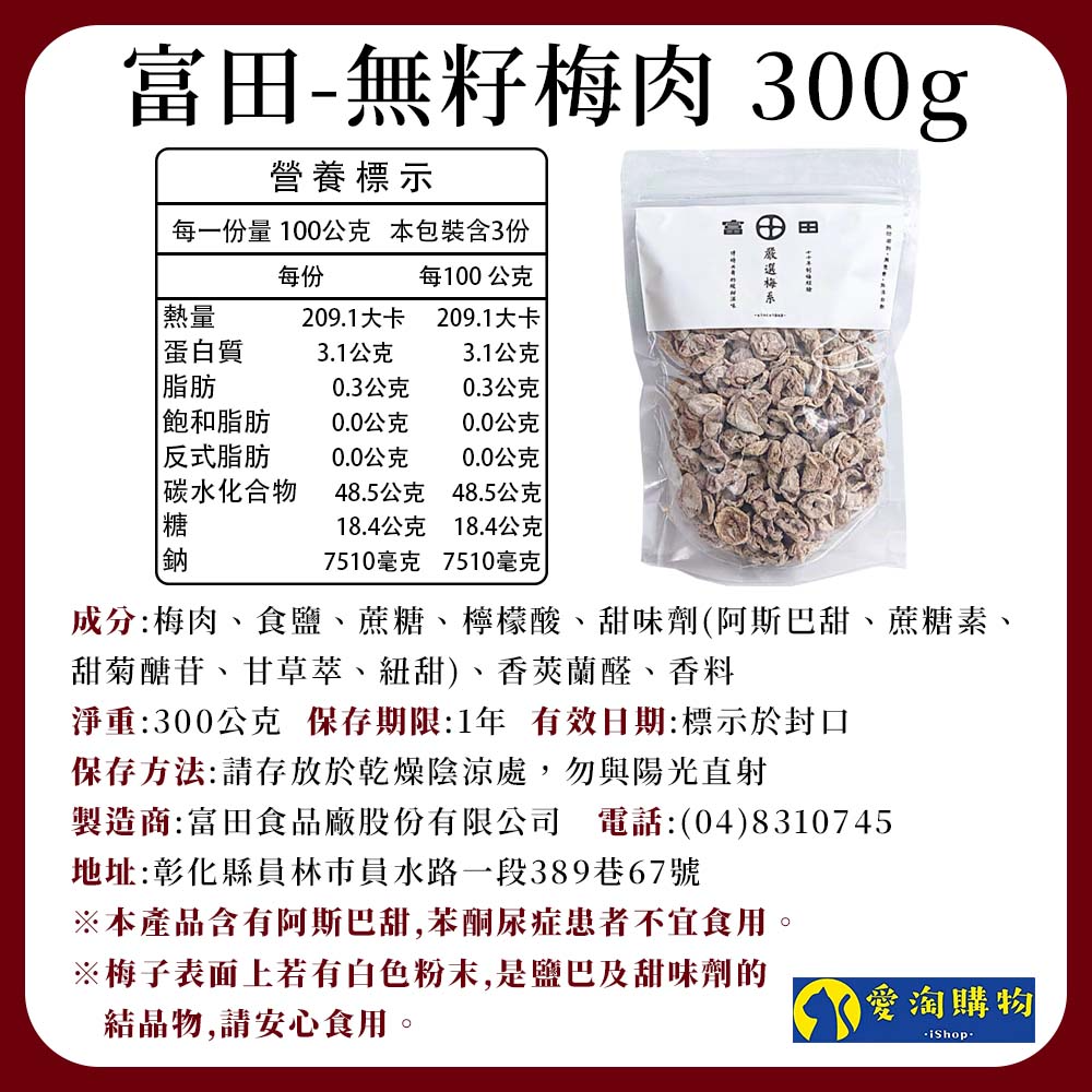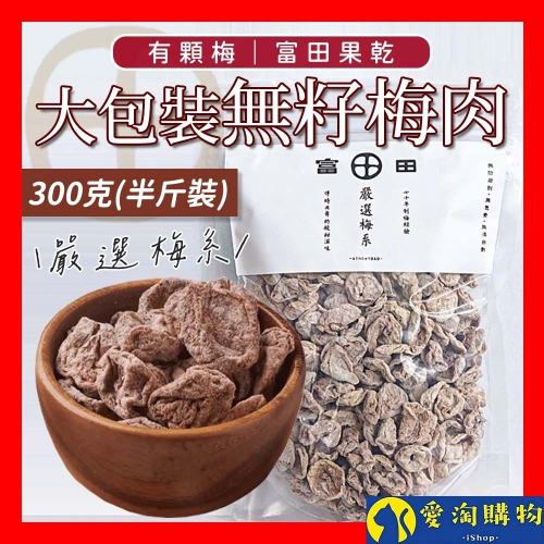 【愛淘購物】富田 大包裝 無籽梅肉 300克 半斤裝 無籽梅肉 梅肉 甜菊梅 無核 袋裝 業務用 零食 蜜餞
