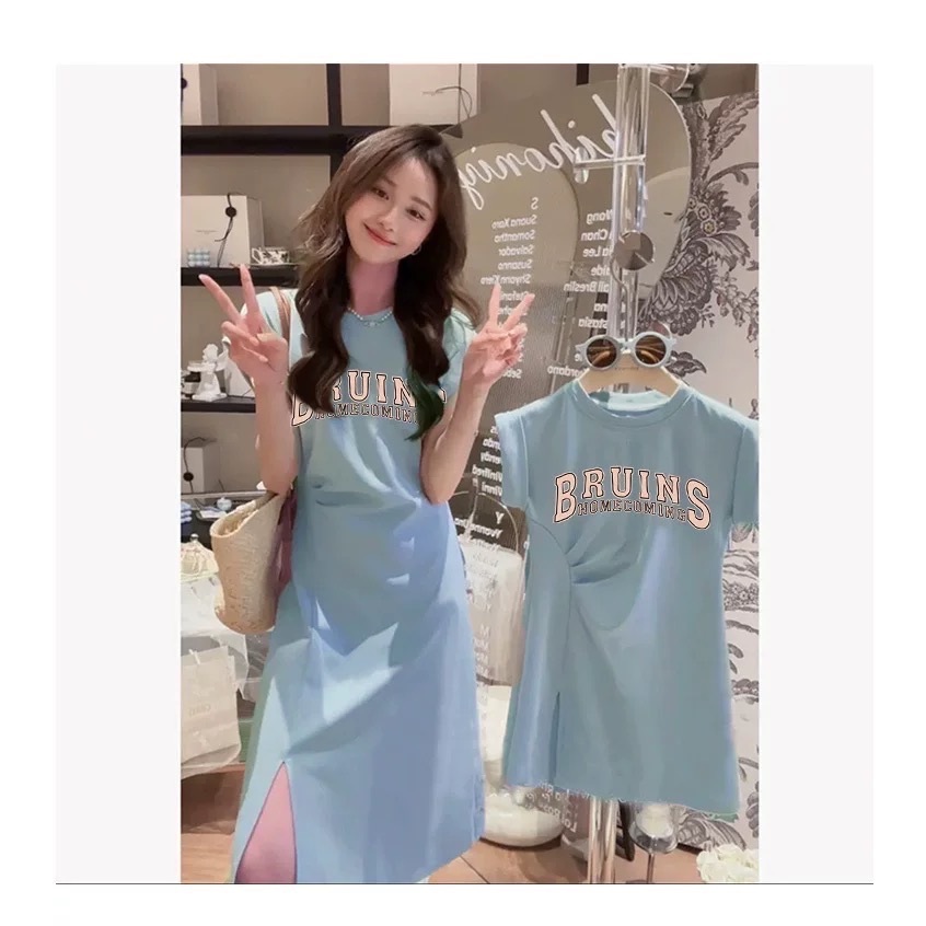 這款淺藍色親子裝以清新柔和的色調為主軸,搭配膚色英文字母「BRUINS」弧形設計,中間點綴「HOME COMING」字樣,簡約中帶有設計感,穿起來自然又有質感。