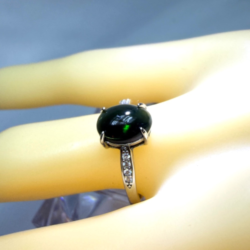 ღ꙼̈貝蒂の城堡ღ꙼̈墨西哥 黑歐珀 蛋面 2克拉 S925純銀 戒指