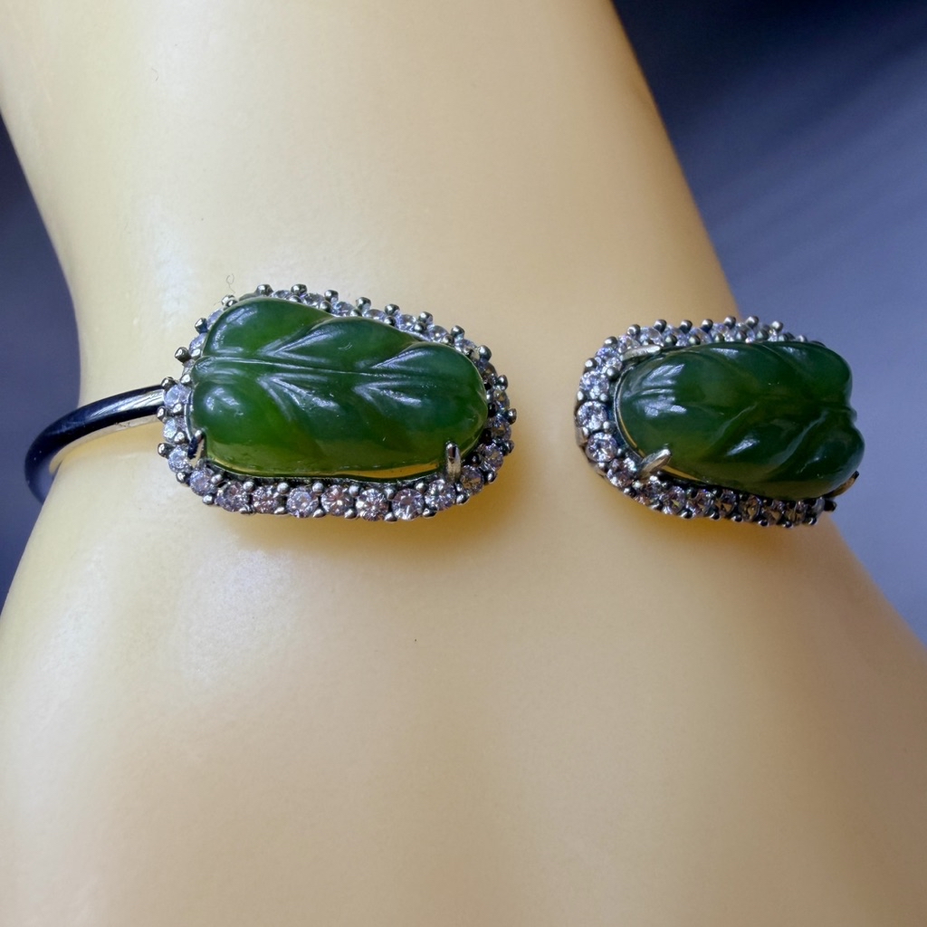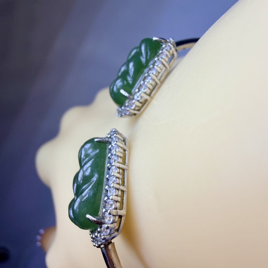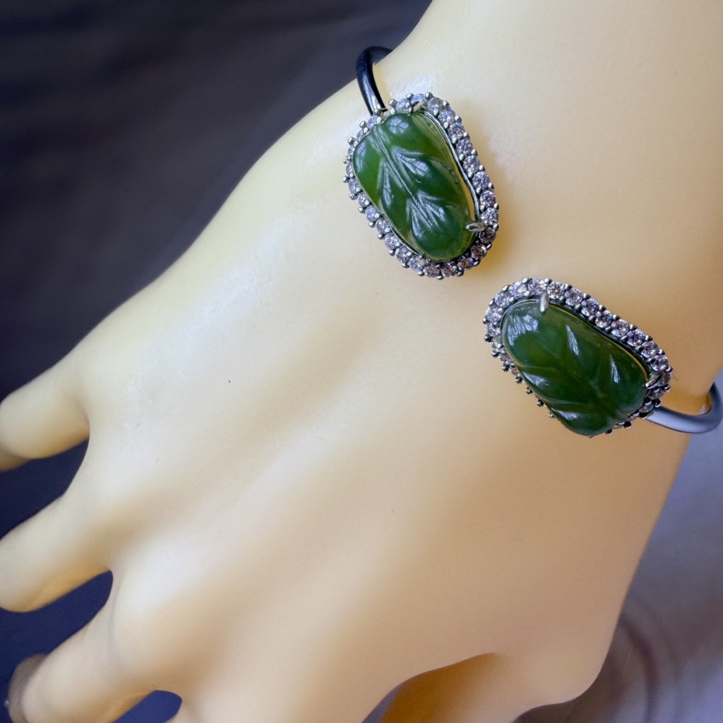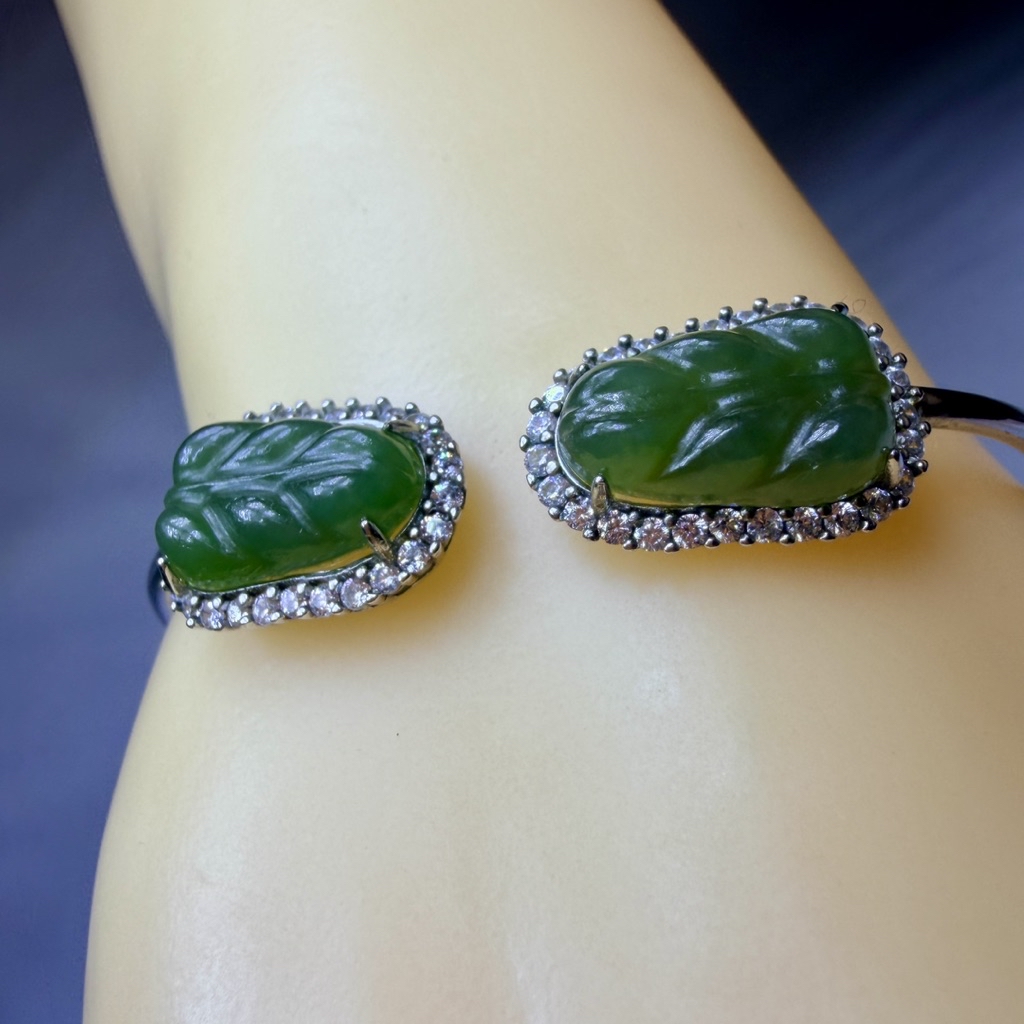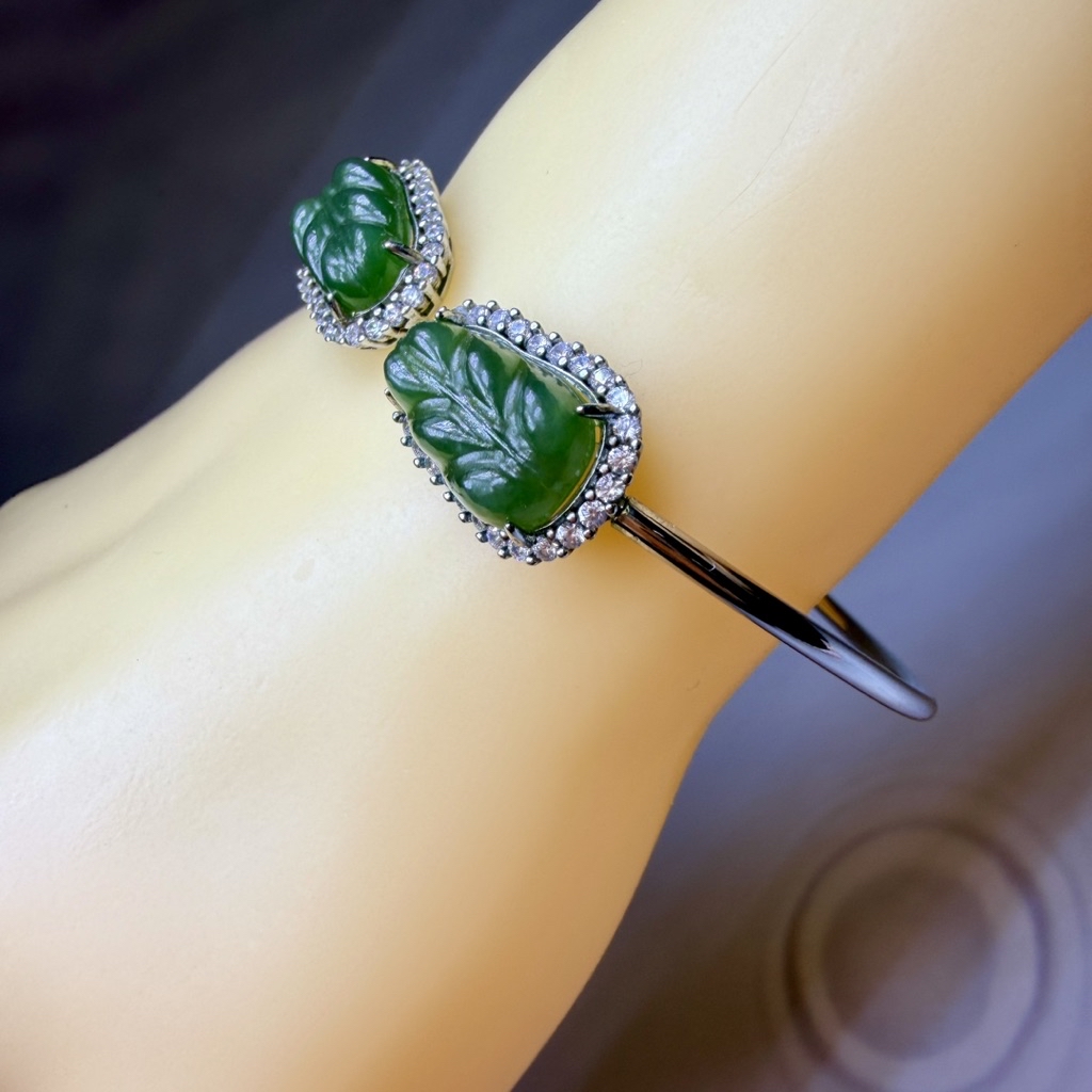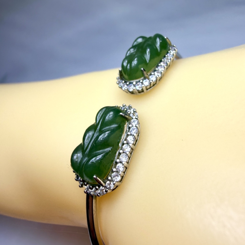 ღ꙼̈貝蒂の城堡ღ꙼̈ 和田 碧玉 玉葉 S925純銀 手鐲