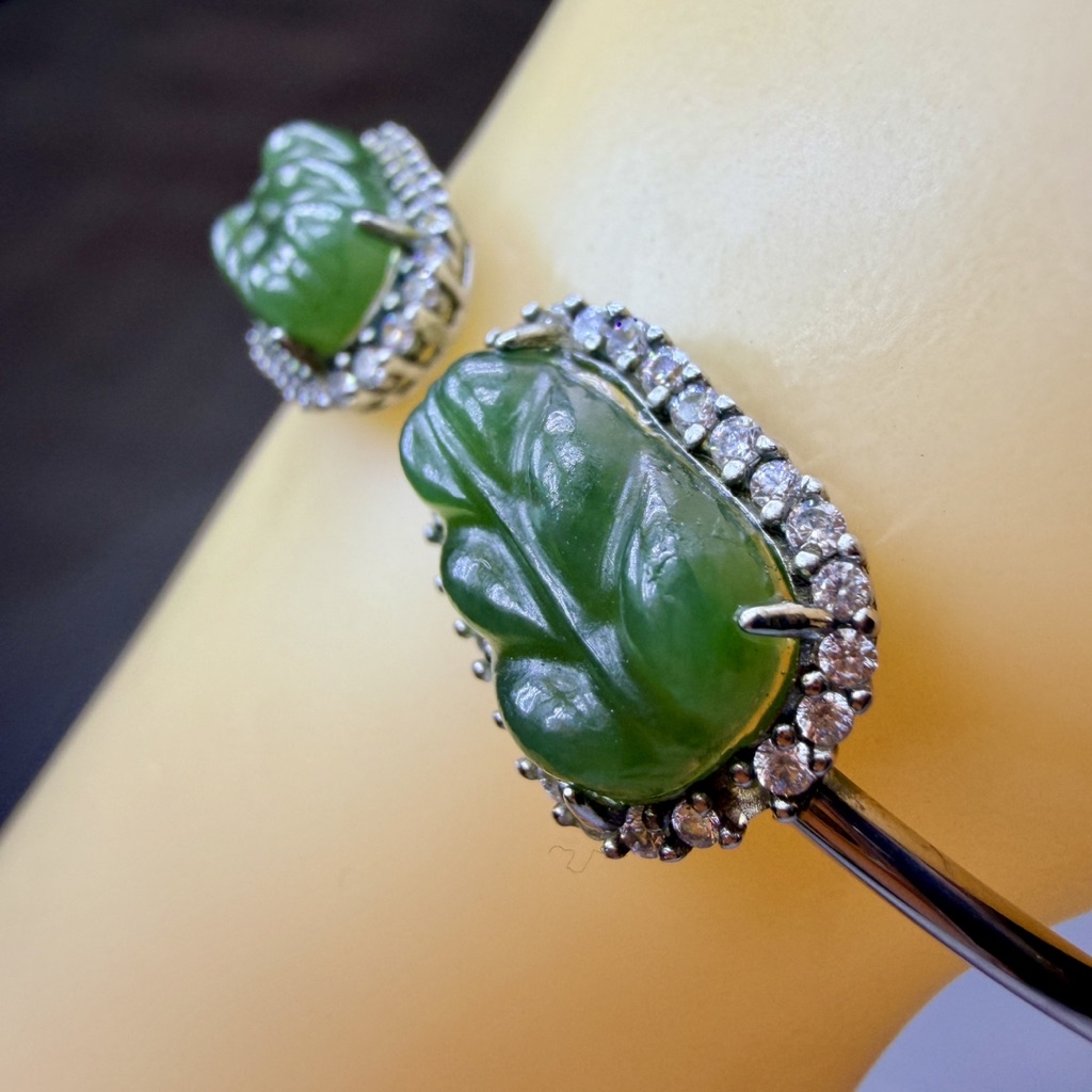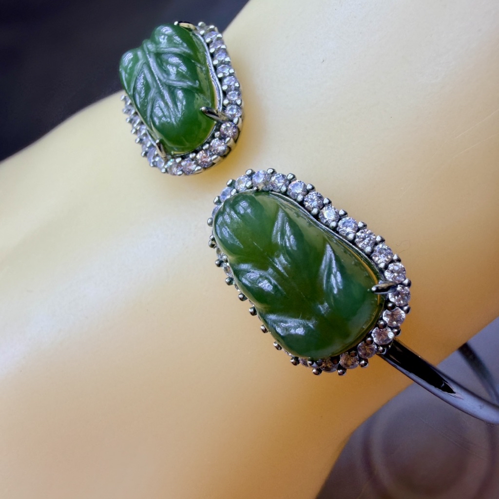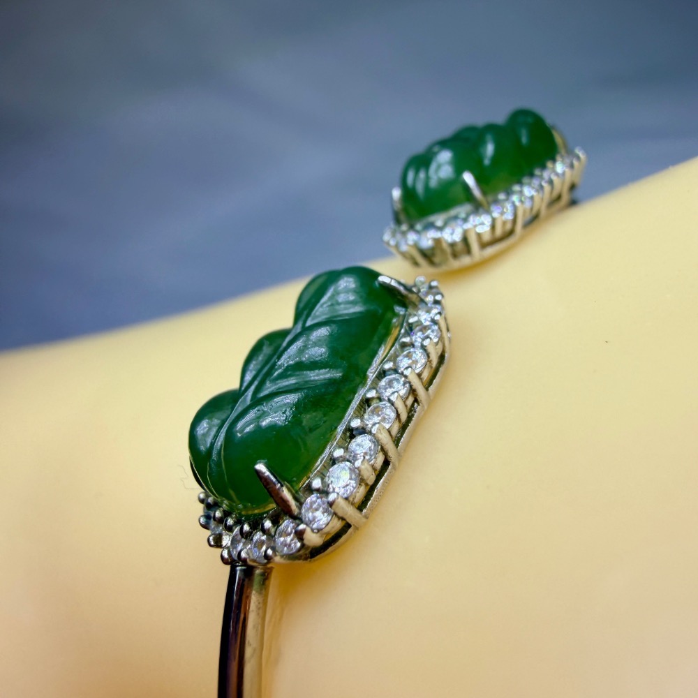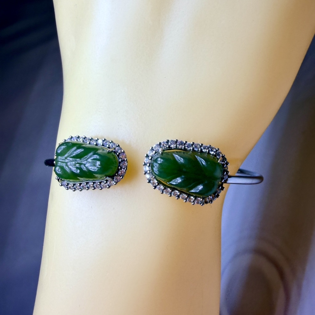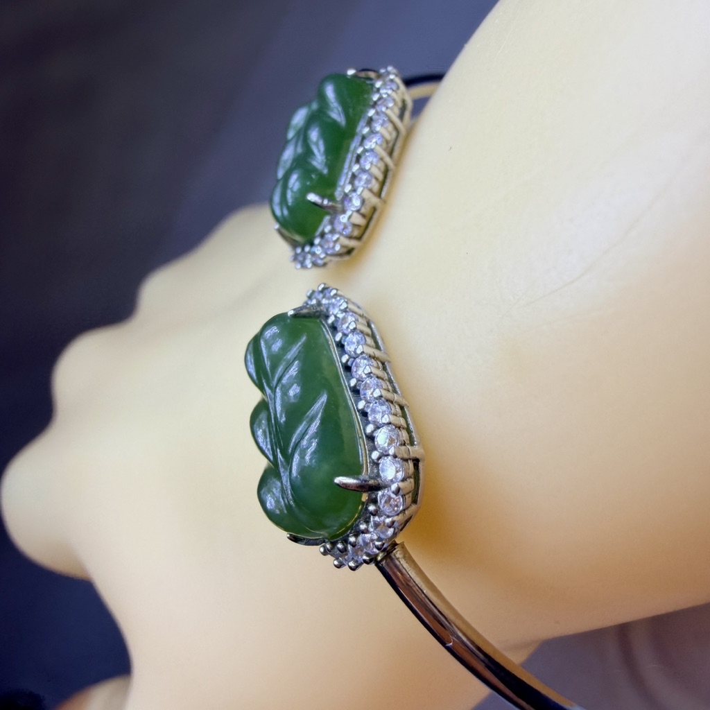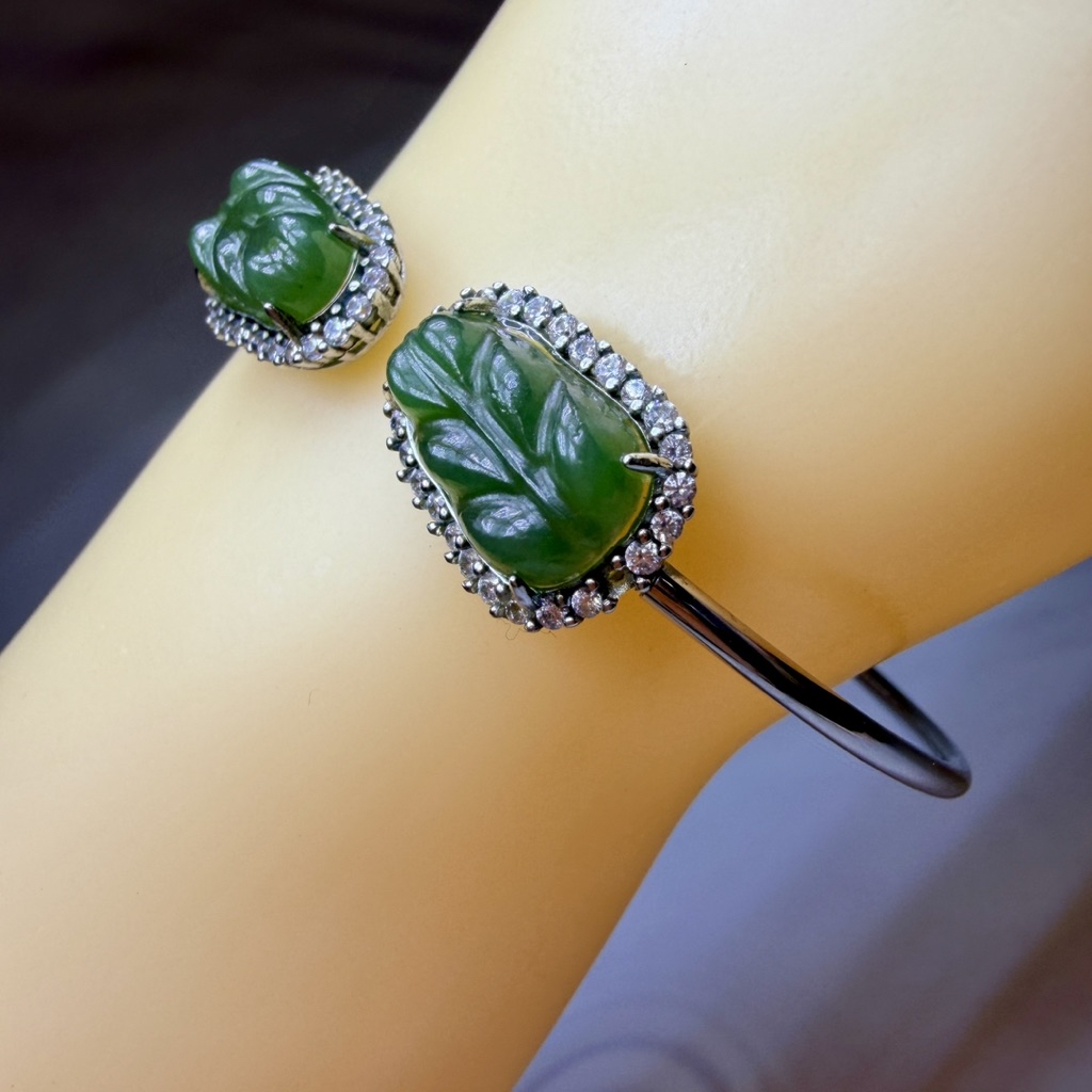 ღ꙼̈貝蒂の城堡ღ꙼̈ 和田 碧玉 玉葉 S925純銀 手鐲