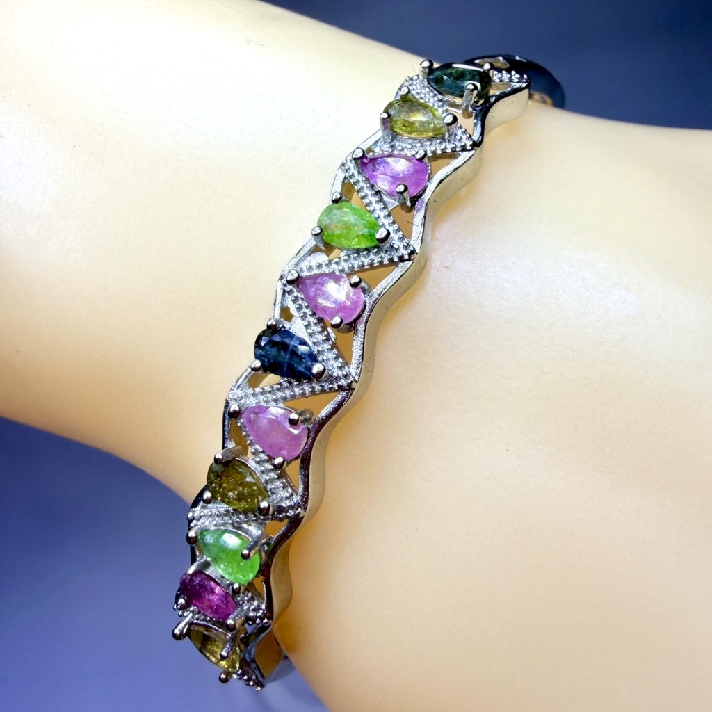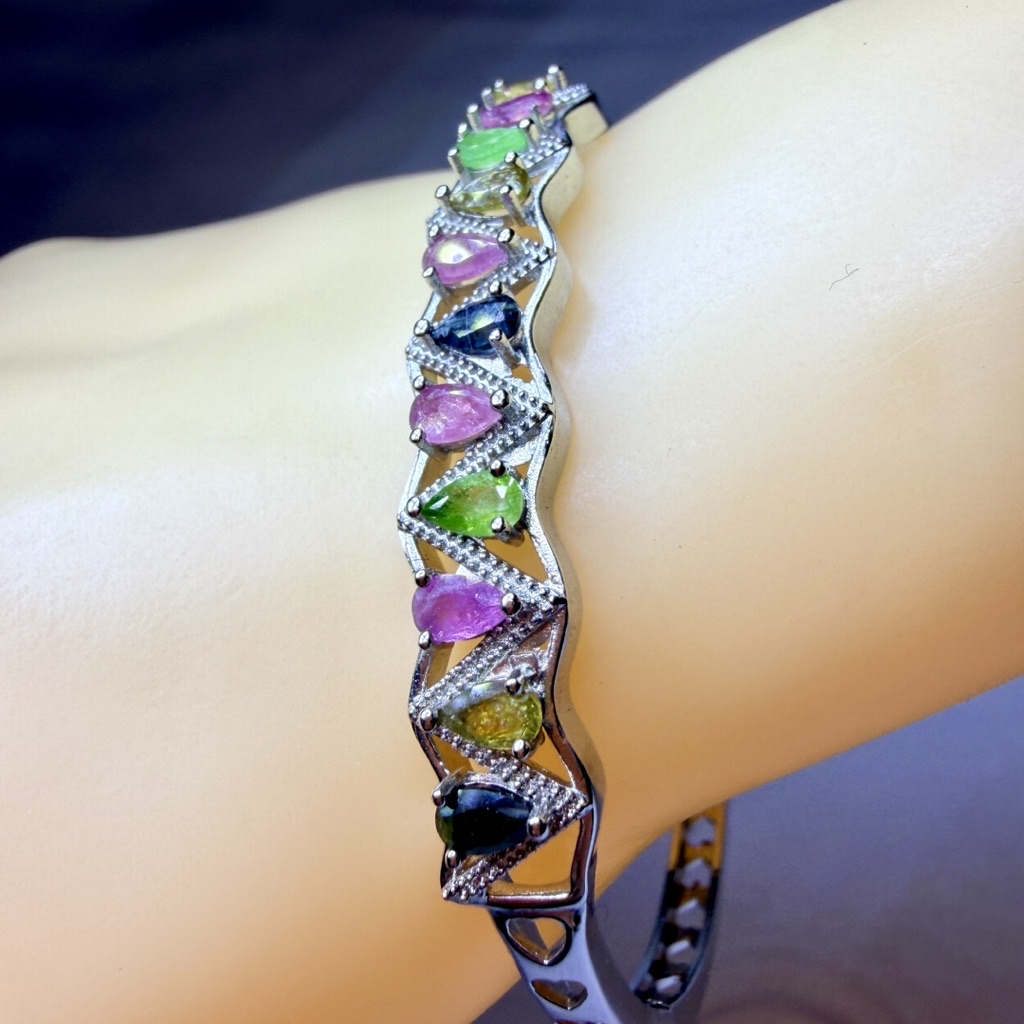 ღ꙼̈貝蒂の城堡ღ꙼̈ 彩碧璽 精工微鑲 鈦鋼材質 手鐲