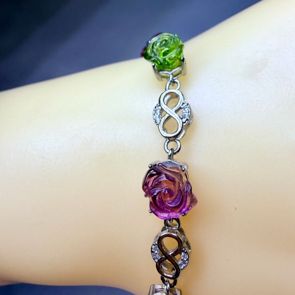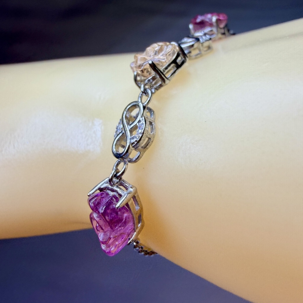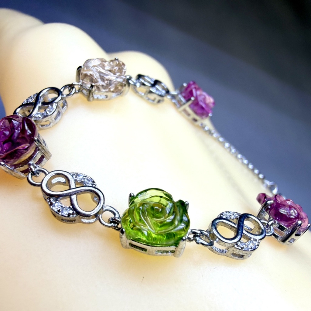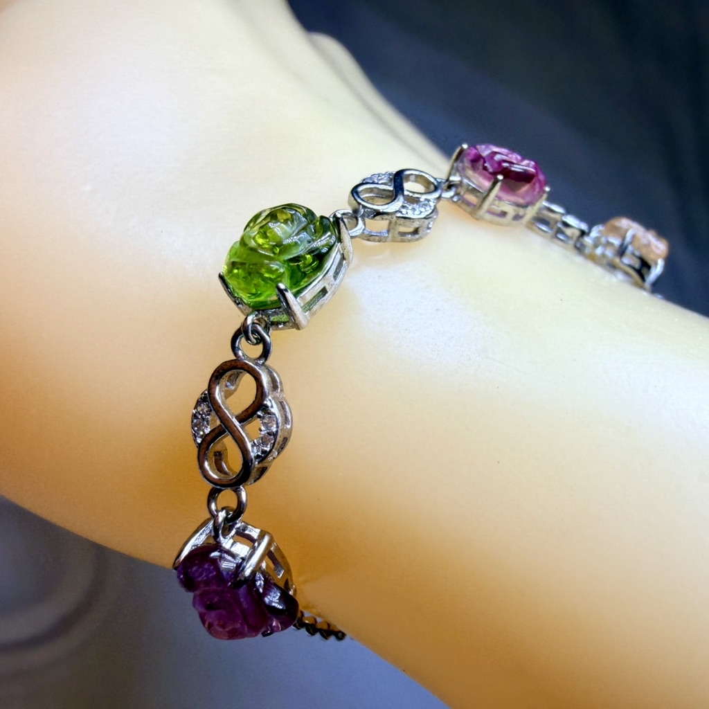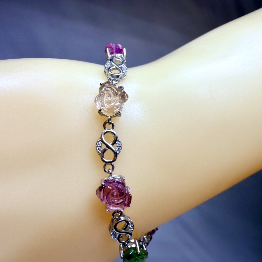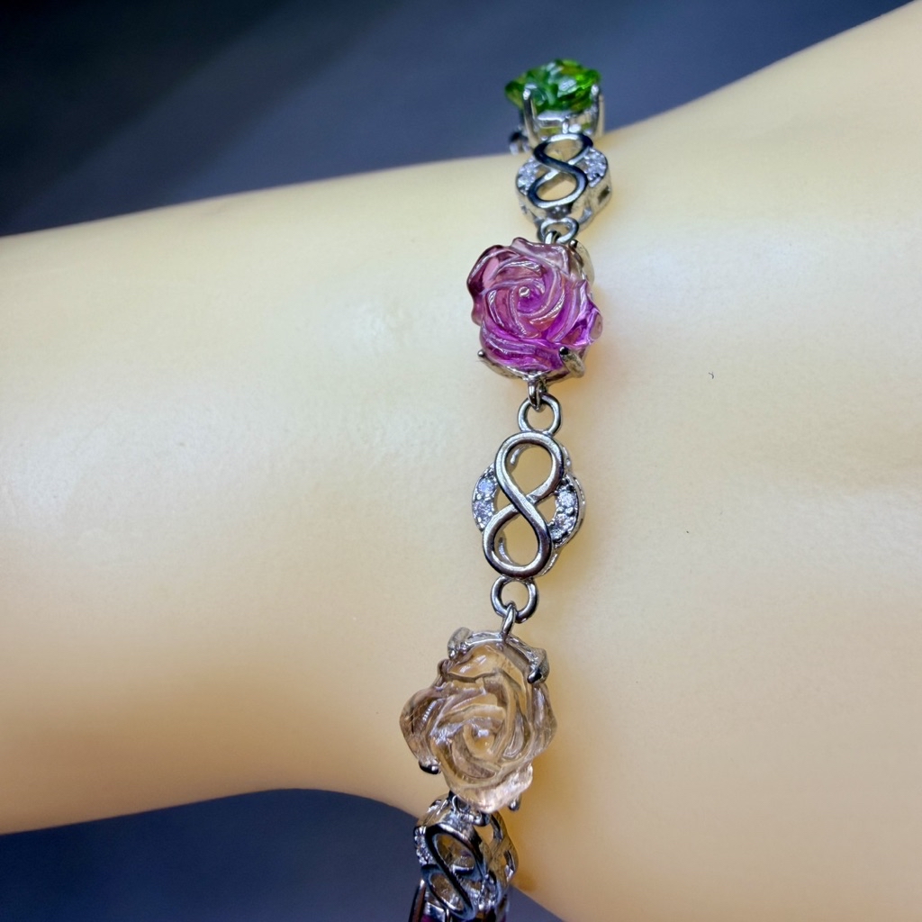 ღ꙼̈貝蒂の城堡ღ꙼̈ 淨透體 彩碧璽 玫瑰 S925純銀 手鏈