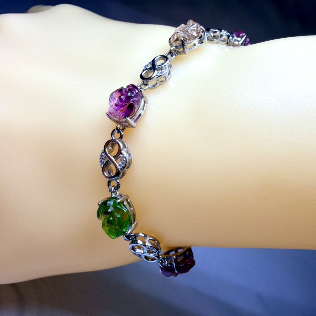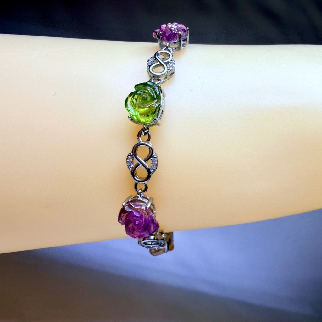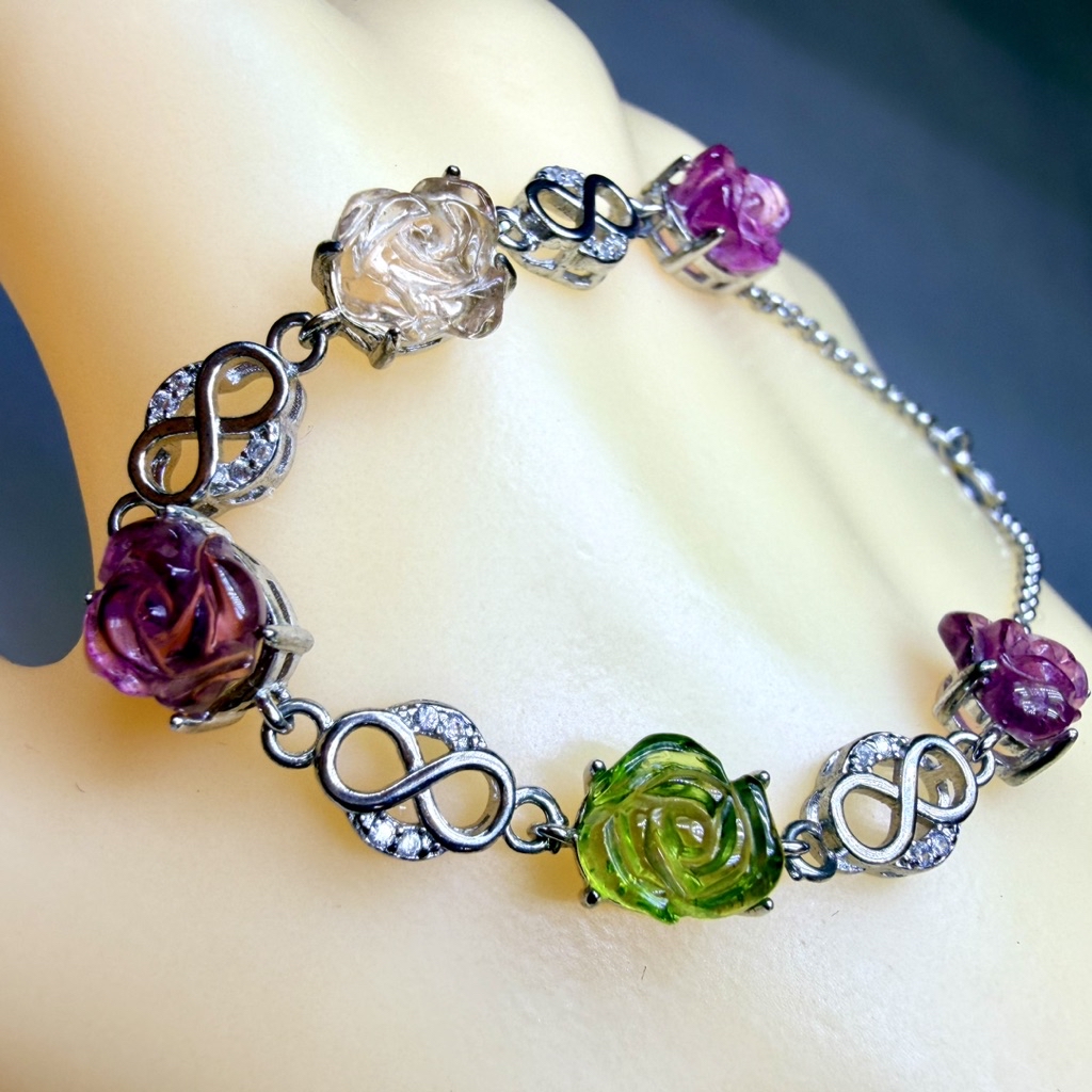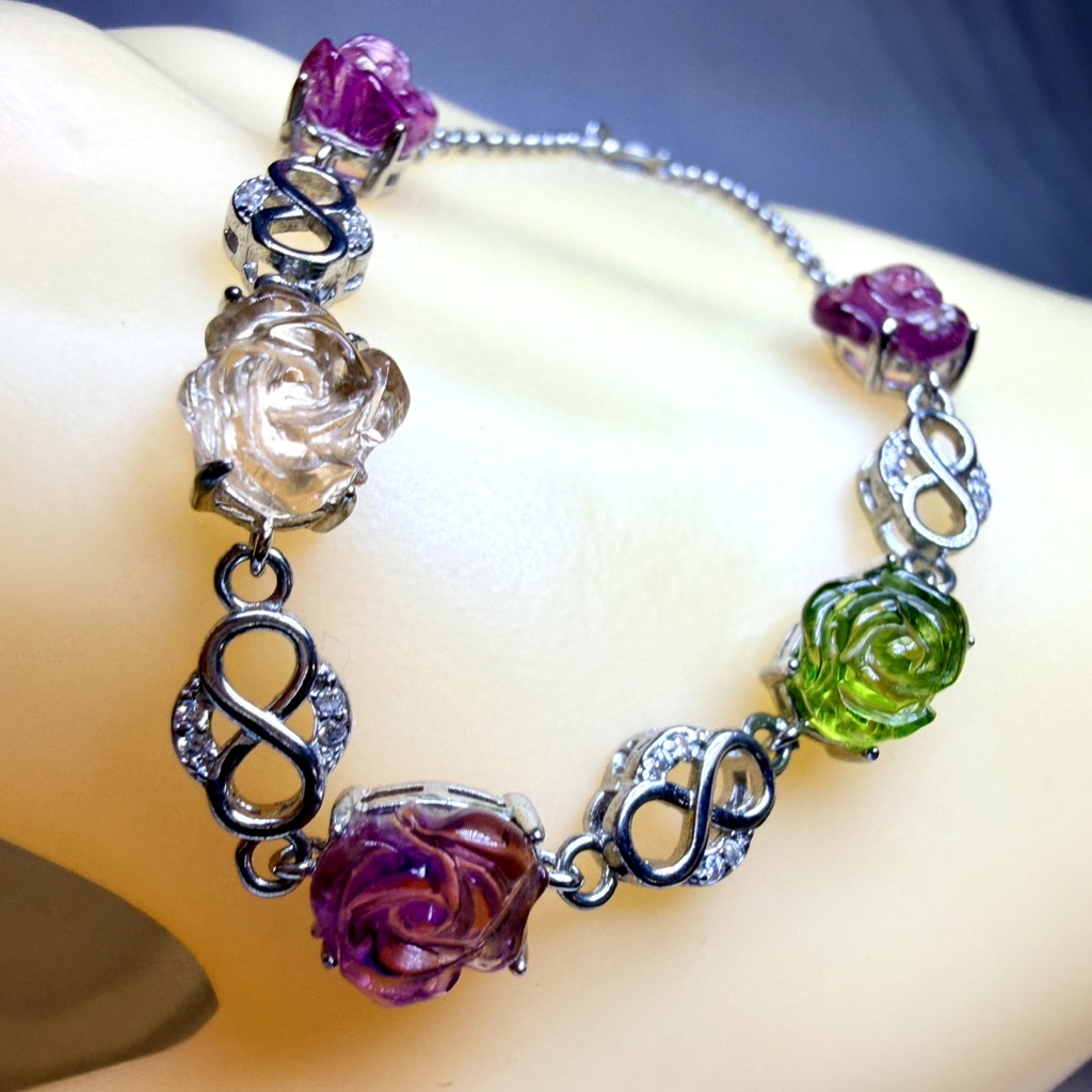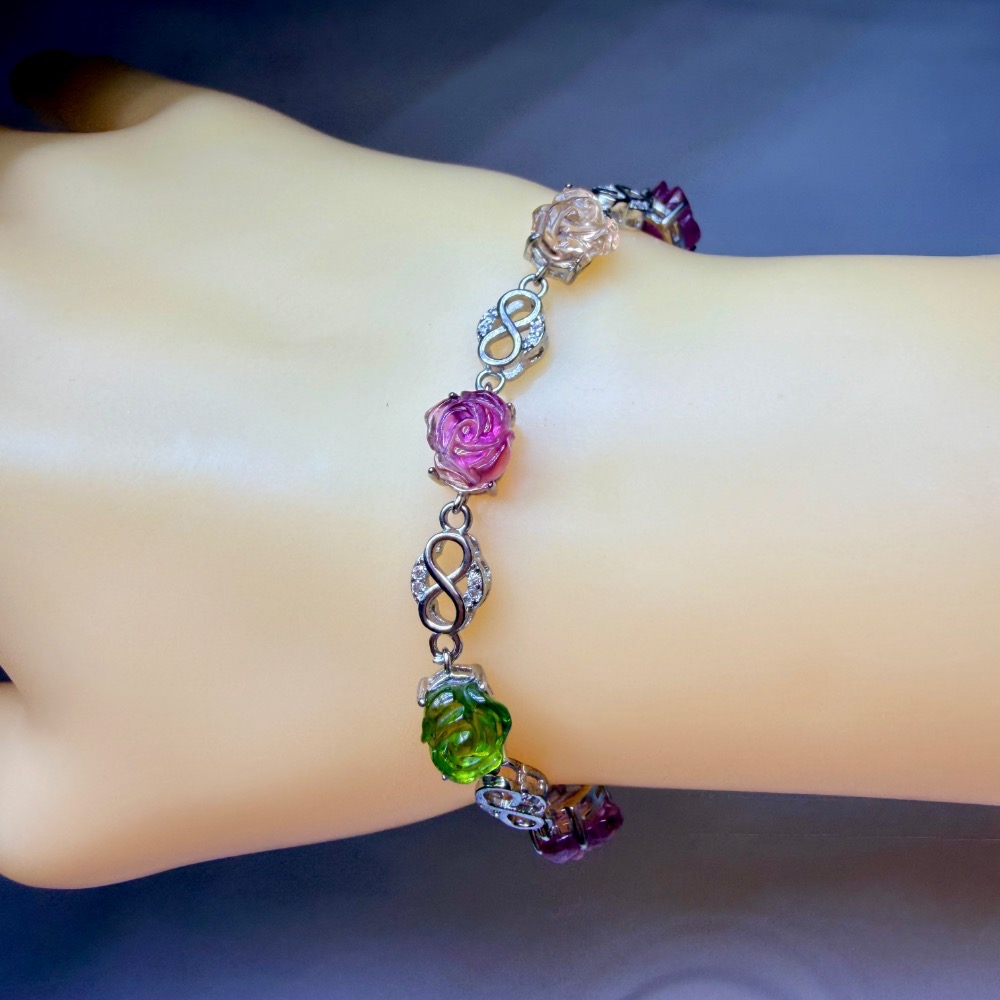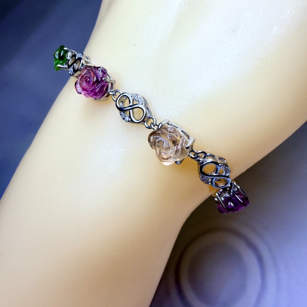 ღ꙼̈貝蒂の城堡ღ꙼̈ 淨透體 彩碧璽 玫瑰 S925純銀 手鏈