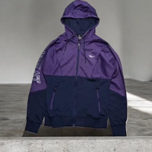 - 紫黑雙色拼接連帽外套
