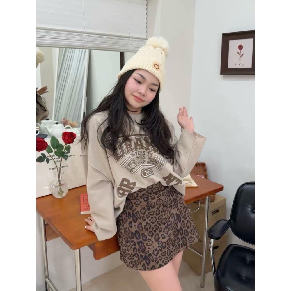 [Sunlight服飾 馬上出貨✨] 美式復古針織落肩款麂皮豹紋高腰A字裙套裝|辣妹|夜店|出遊|氣質|性感|派對🎉