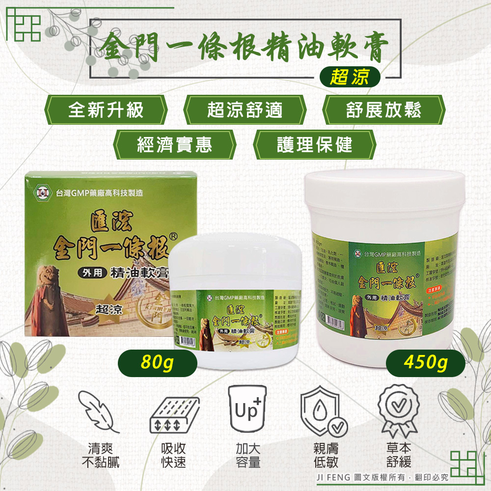 商品內容:【匯浤】金門一條根精油軟膏(涼感) 80g & 450g