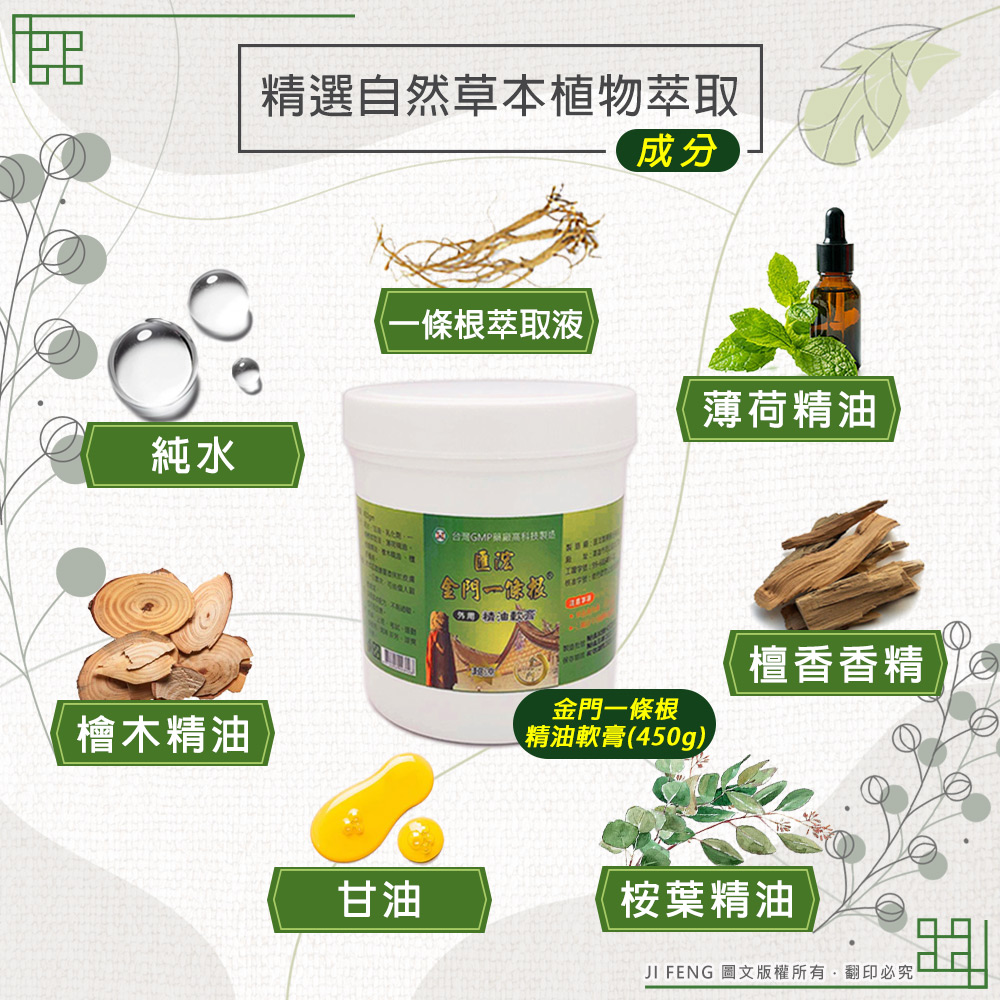 【匯浤】金門一條根精油軟膏(涼感) 450g