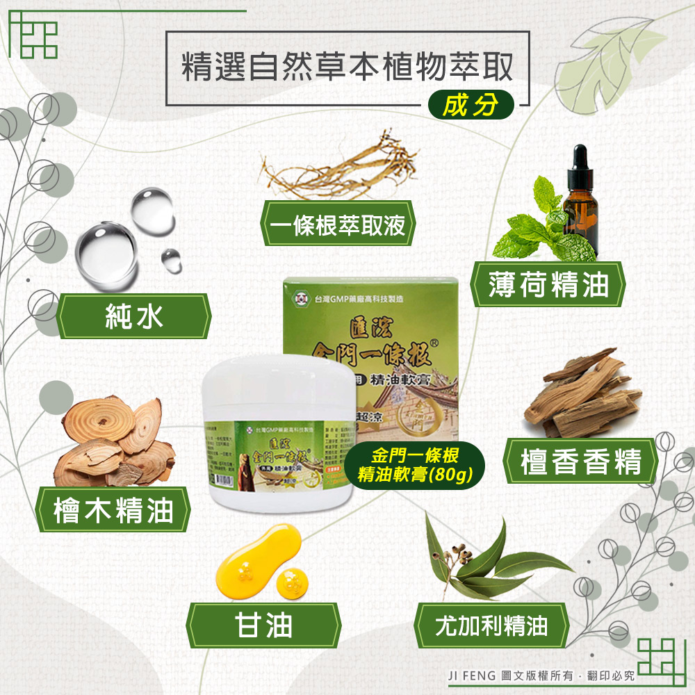 【匯浤】金門一條根精油軟膏(涼感) 80g