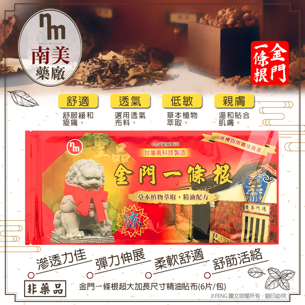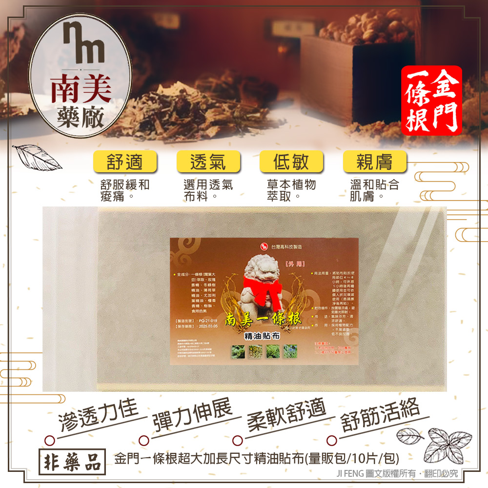 【南美藥廠】金門ㄧ條根超大加長尺寸精油貼布-35cmX15cm/片(6片/包)