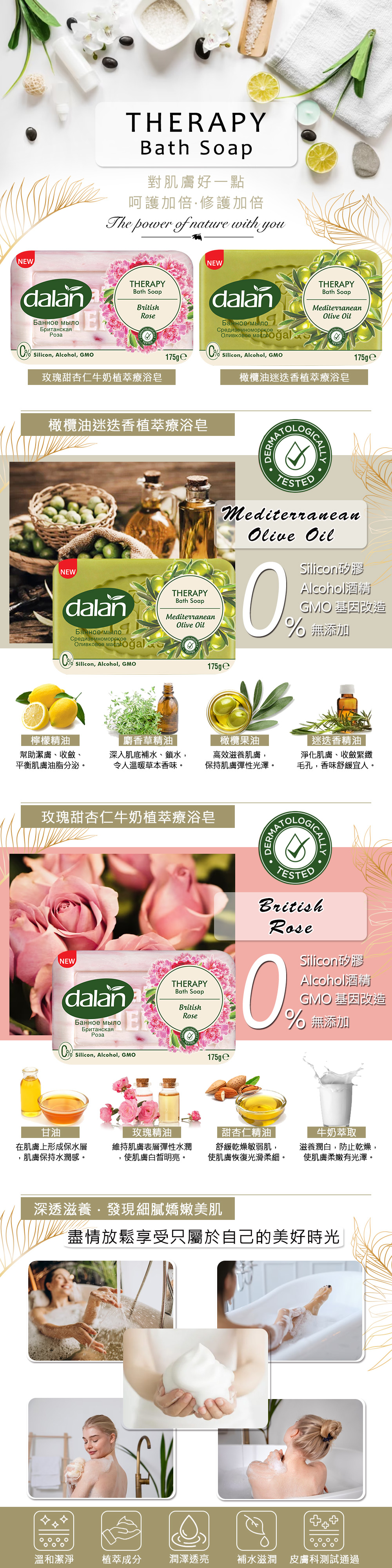商品內容:現貨供應【土耳其dalan】植物萃取草本療浴皂175g➭多款-玫瑰甜杏仁牛奶/橄欖油迷迭香