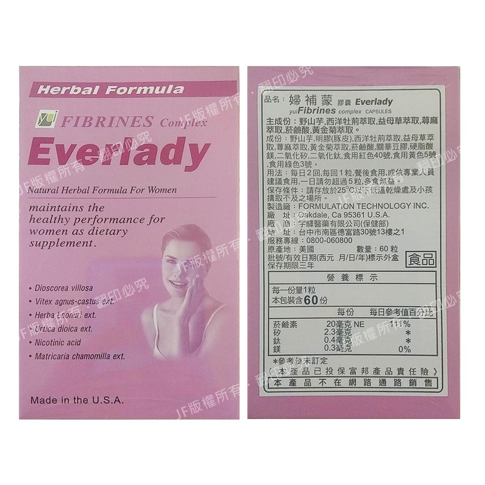 品 名 :Fibrines 婦補蒙60粒。更年期/熱潮紅/保健食品