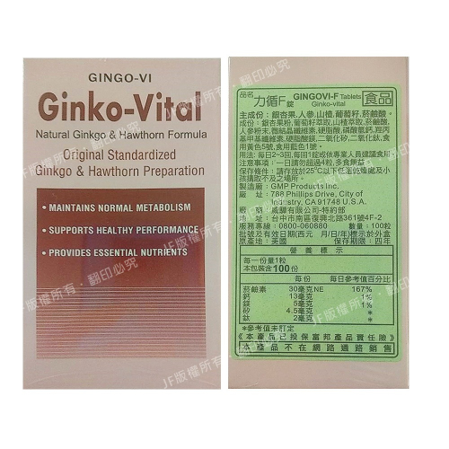品 名 :Gingovi 力循 100粒。銀杏 Ginko-Vital