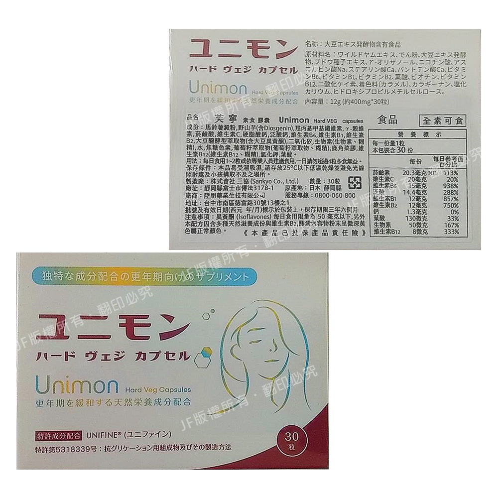 品 名 :Unimon 芙寧30粒。更年期/生理照護/五合一植物調理配方