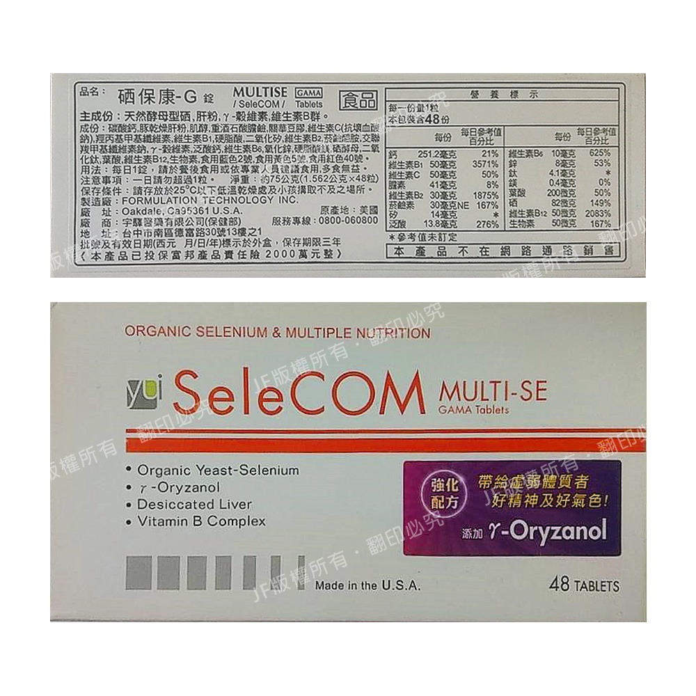 品 名 :Multi-SE 硒保康膠囊48粒。Selenium/γ-Oryzanol