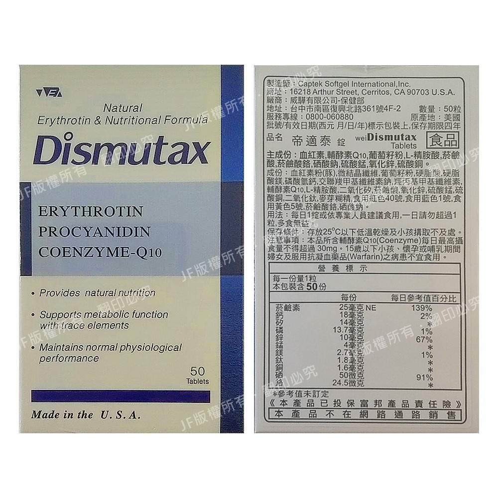 品 名 :Dismutax 帝適泰 50粒