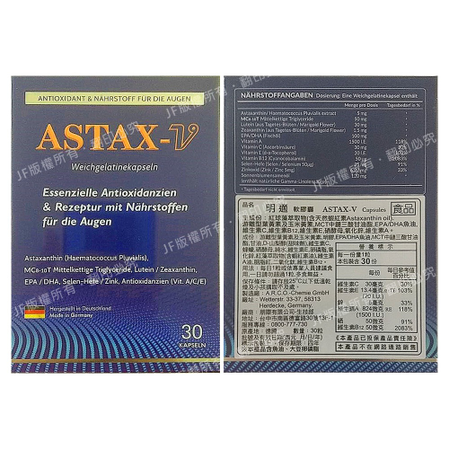 品 名 :Astax-V 明適膠囊30粒。蝦紅素Astaxanthin/葉黃素/玉米黃素/EPA/DHA魚油