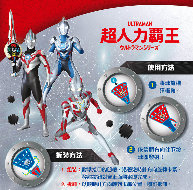2個彈射球具;2色各2顆的專屬圖案小球,共4顆球。