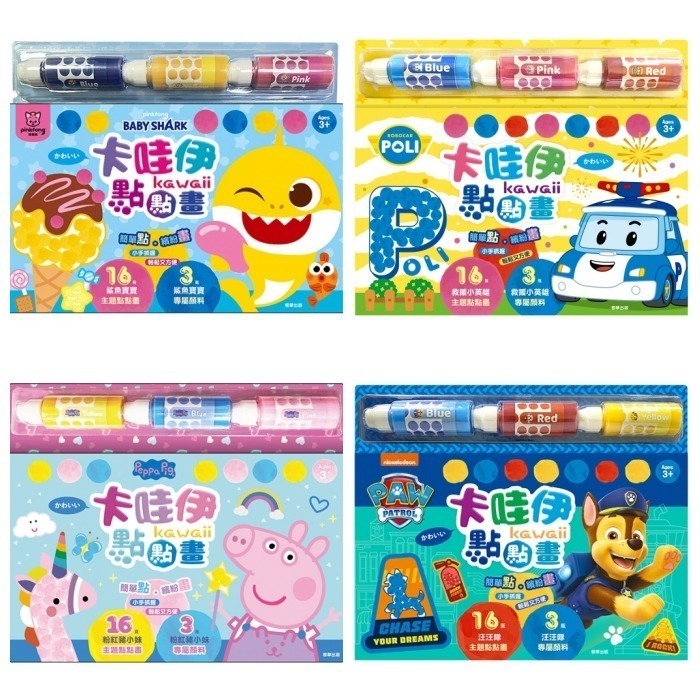 ◆本書共有16頁,附三瓶專屬色顏料。顏料瓶適合小手抓握,簡單點,繽紛畫。