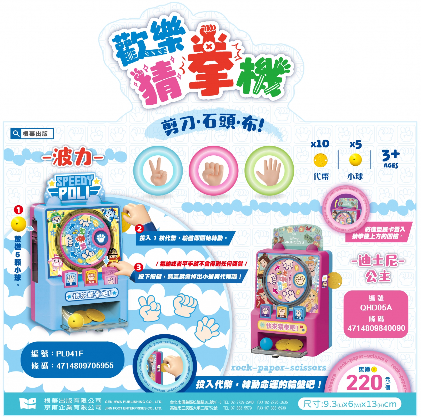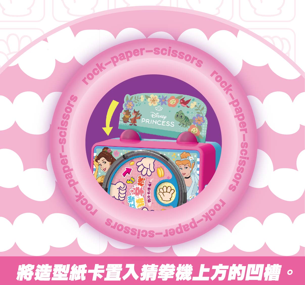 3.按下「布」、「石頭」或「剪刀」三者按鍵之一,如果猜拳贏了就會掉出小球與代幣,猜輸或者平手就不會得到任何獎賞喔!