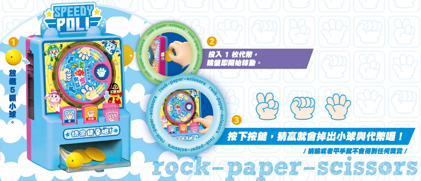 3.按下「布」、「石頭」或「剪刀」三者按鍵之一,如果猜拳贏了就會掉出小球與代幣,猜輸或者平手就不會得到任何獎賞喔!