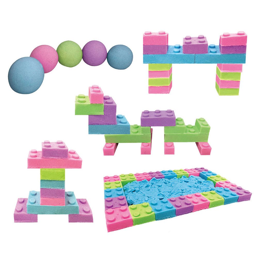 ★不只是單純的玩沙遊戲,結合了孩子最愛的積木模具,邊玩邊堆疊出各式各樣不同的造型。